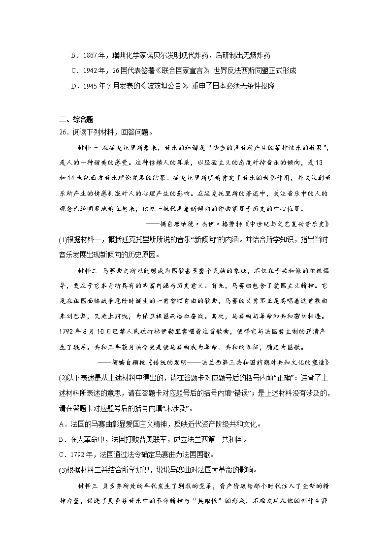 時(shí)間:2025-07-15 12:22:00 來(lái)源:無(wú)憂考網(wǎng) [字體:小 中 大]【文檔名稱】 2024-2025學(xué)年重慶市南岸區(qū)九年級(jí)上學(xué)期歷史期末試題及答案(Word版).doc