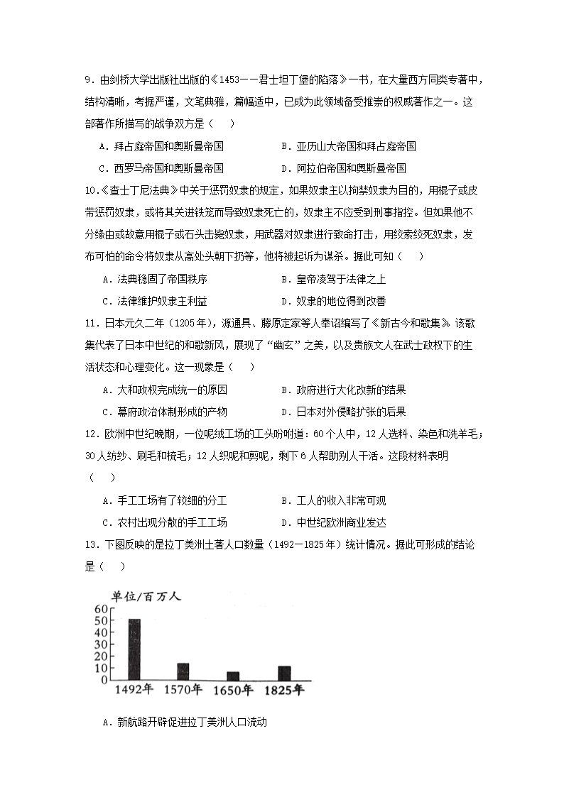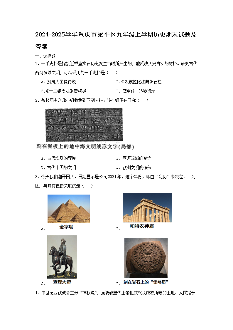2024-2025學(xué)年重慶市梁平區(qū)九年級上學(xué)期歷史期末試題及答案(Word版)