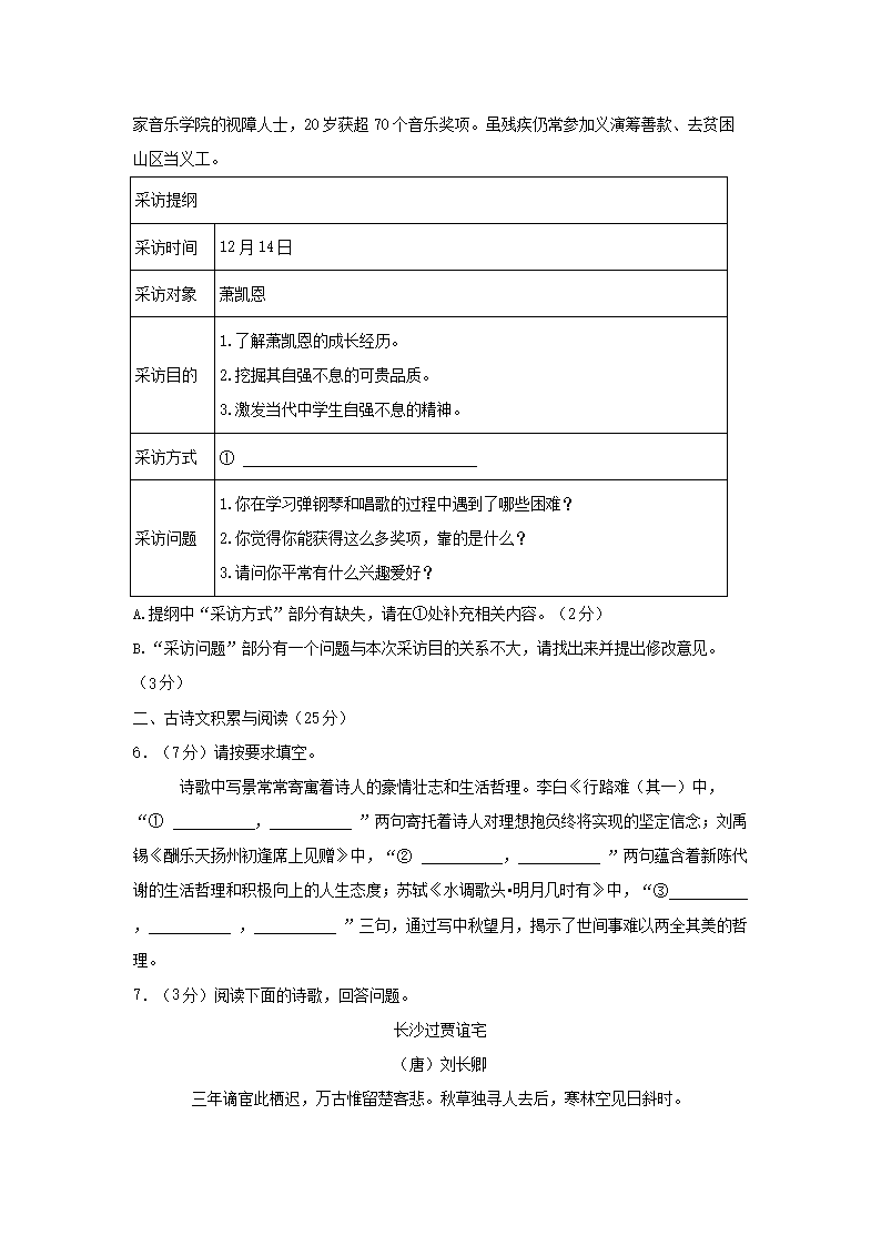 【文檔預(yù)覽】 無憂考網(wǎng)整理發(fā)布2024-2025學(xué)年重慶市九龍坡區(qū)九年級上學(xué)期語文期末試題及答案(Word版),前五頁預(yù)覽如下: