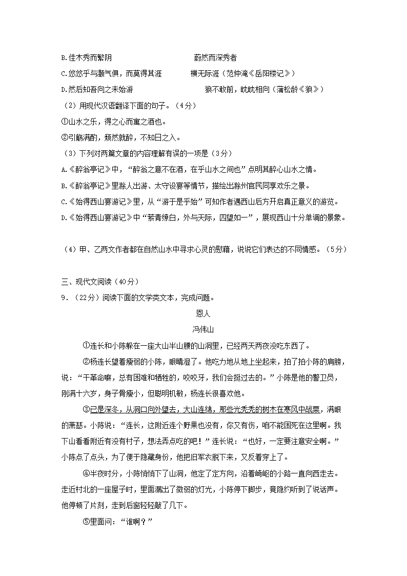 - 2024-2025學(xué)年重慶市巫山縣九年級上學(xué)期語文期末試題及答案