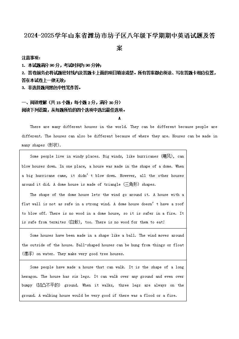 時(shí)間:2025-07-15 17:22:00 來源:無憂考網(wǎng) [字體:小 中 大]【文檔名稱】 2024-2025學(xué)年山東省濰坊市坊子區(qū)八年級(jí)下學(xué)期期中英語試題及答案(Word版).doc