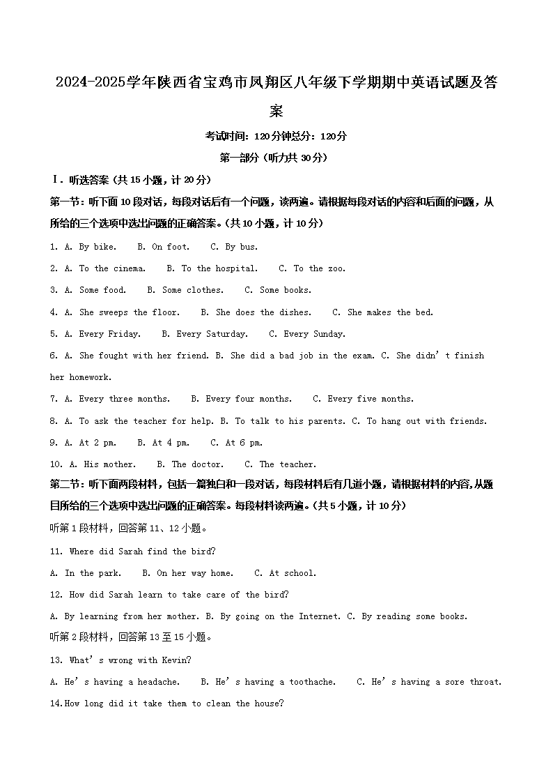 時(shí)間:2025-07-15 17:23:00 來(lái)源:無(wú)憂考網(wǎng) [字體:小 中 大]【文檔名稱】 2024-2025學(xué)年陜西省寶雞市鳳翔區(qū)八年級(jí)下學(xué)期期中英語(yǔ)試題及答案(Word版).doc