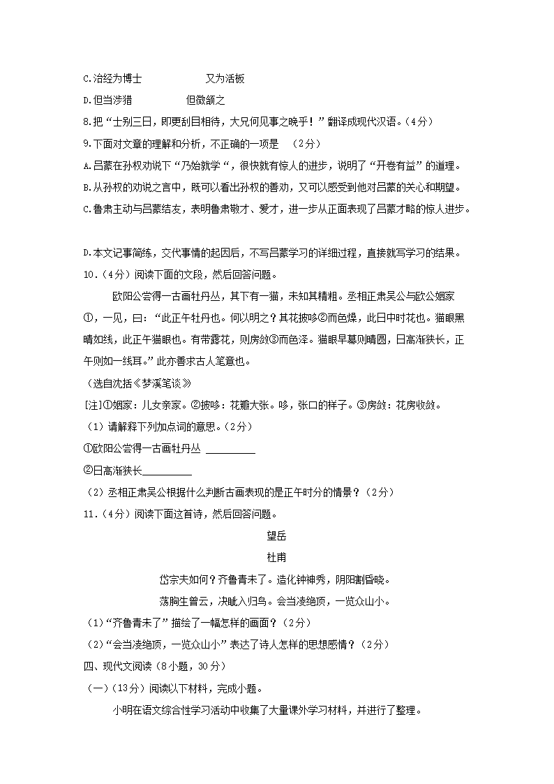 時(shí)間:2025-07-15 17:54:00 來(lái)源:無(wú)憂考網(wǎng) [字體:小 中 大]【文檔名稱】 2021-2022學(xué)年廣東廣州越秀區(qū)七年級(jí)下冊(cè)語(yǔ)文期末試卷及答案(Word版).doc