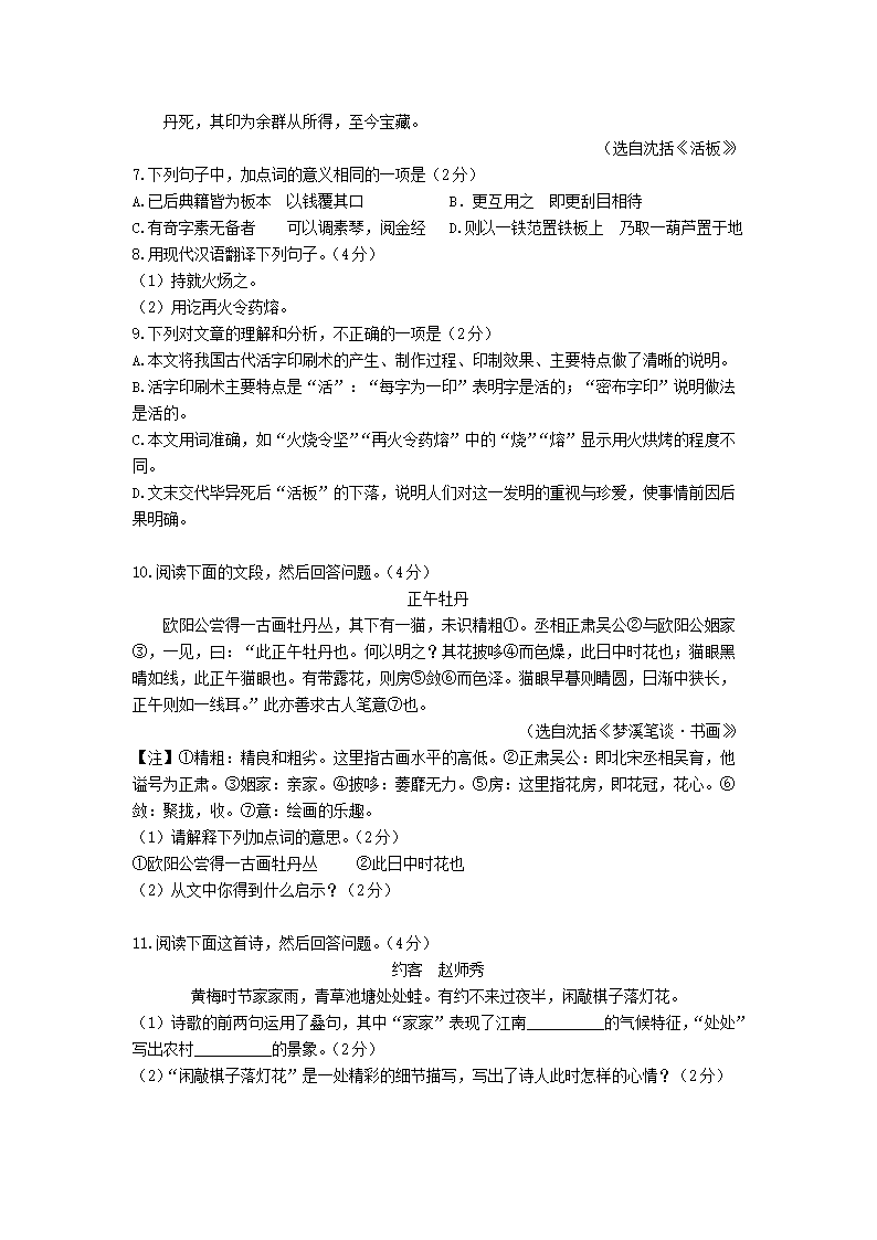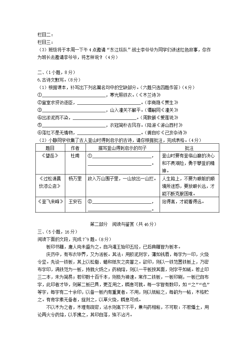- 2021-2022學(xué)年廣東廣州黃埔區(qū)七年級下冊語文期末試卷及答案