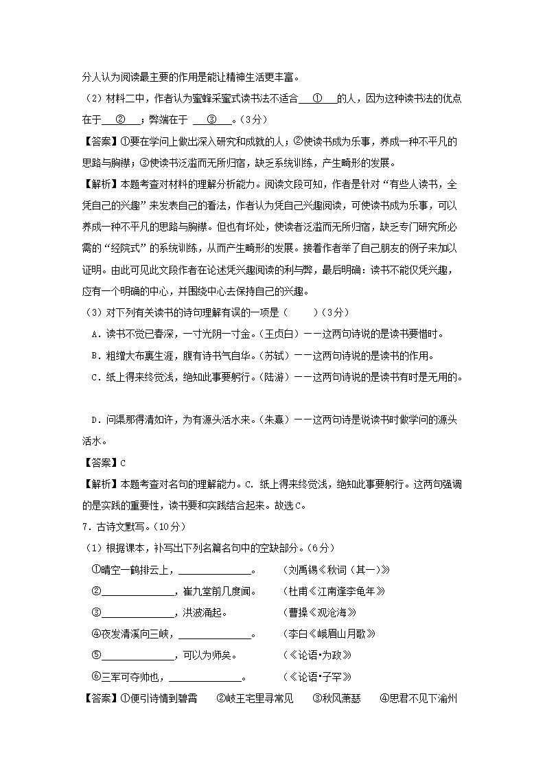 - 2021-2022學年重慶渝北區(qū)七年級下冊語文期中試卷及答案
