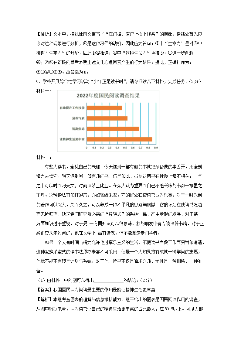 - 2022-2023學年重慶巴南區(qū)七年級下冊語文期末試卷及答案
