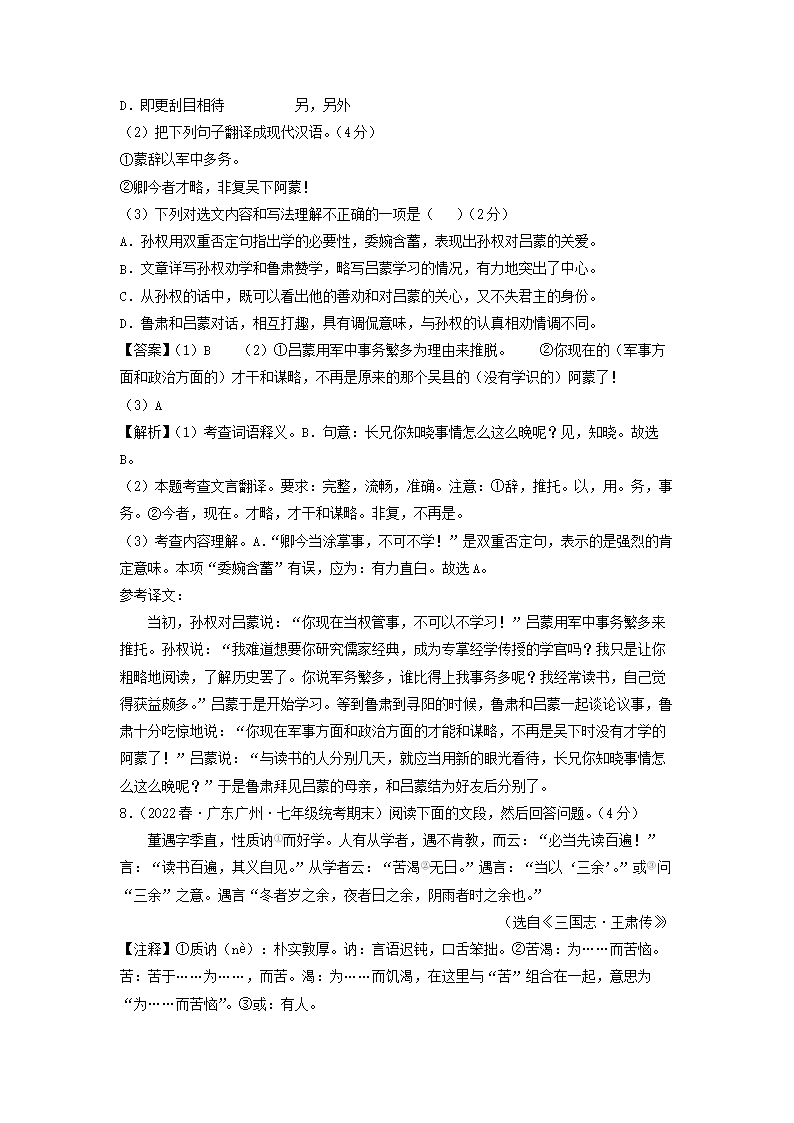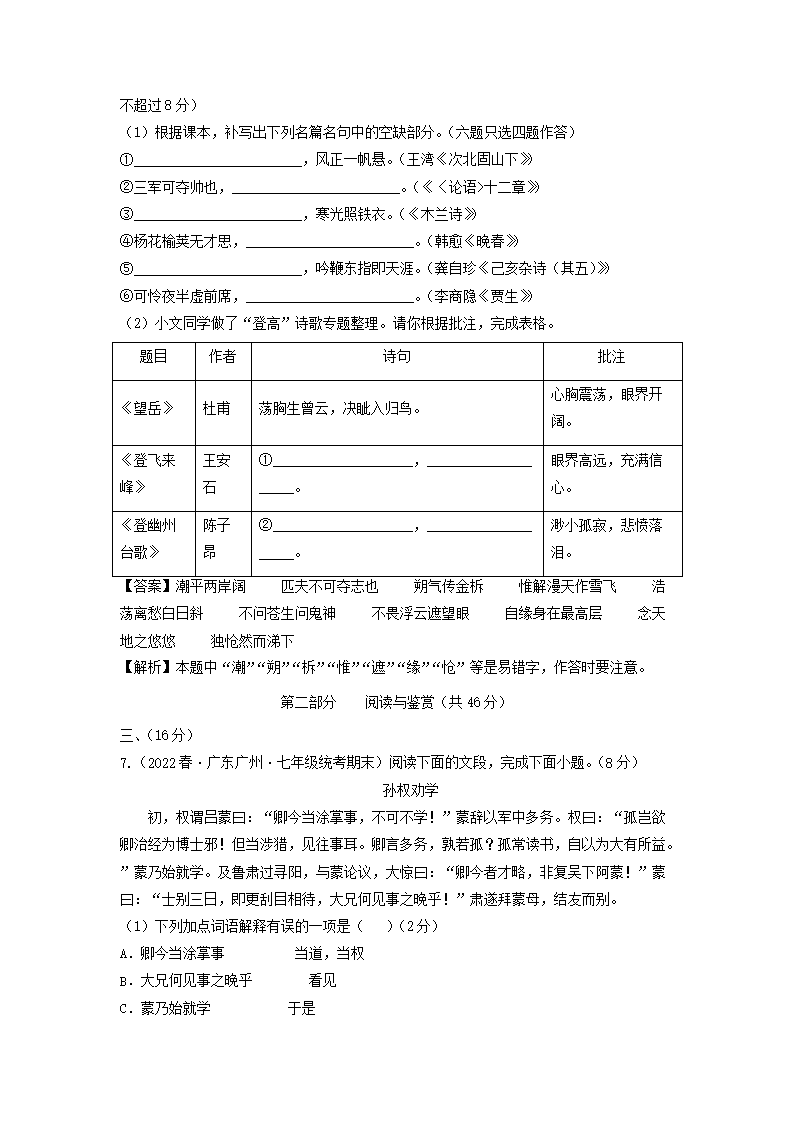 【文檔名稱】 2022-2023學年廣東廣州七年級下冊語文期末試卷及答案B卷(Word版).doc