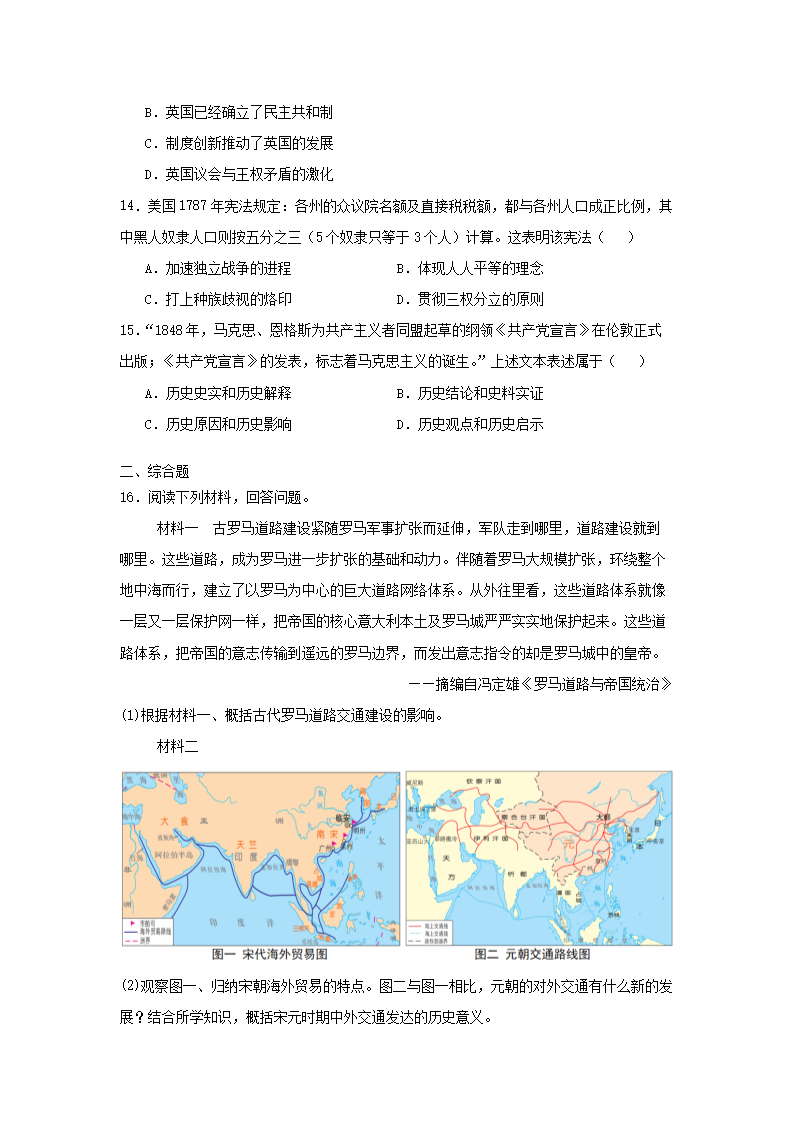 時間:2025-07-17 09:10:00 來源:無憂考網(wǎng) [字體:小 中 大]【文檔名稱】 2024-2025學(xué)年重慶市渝中區(qū)九年級上學(xué)期歷史期末試題及答案(Word版).doc
