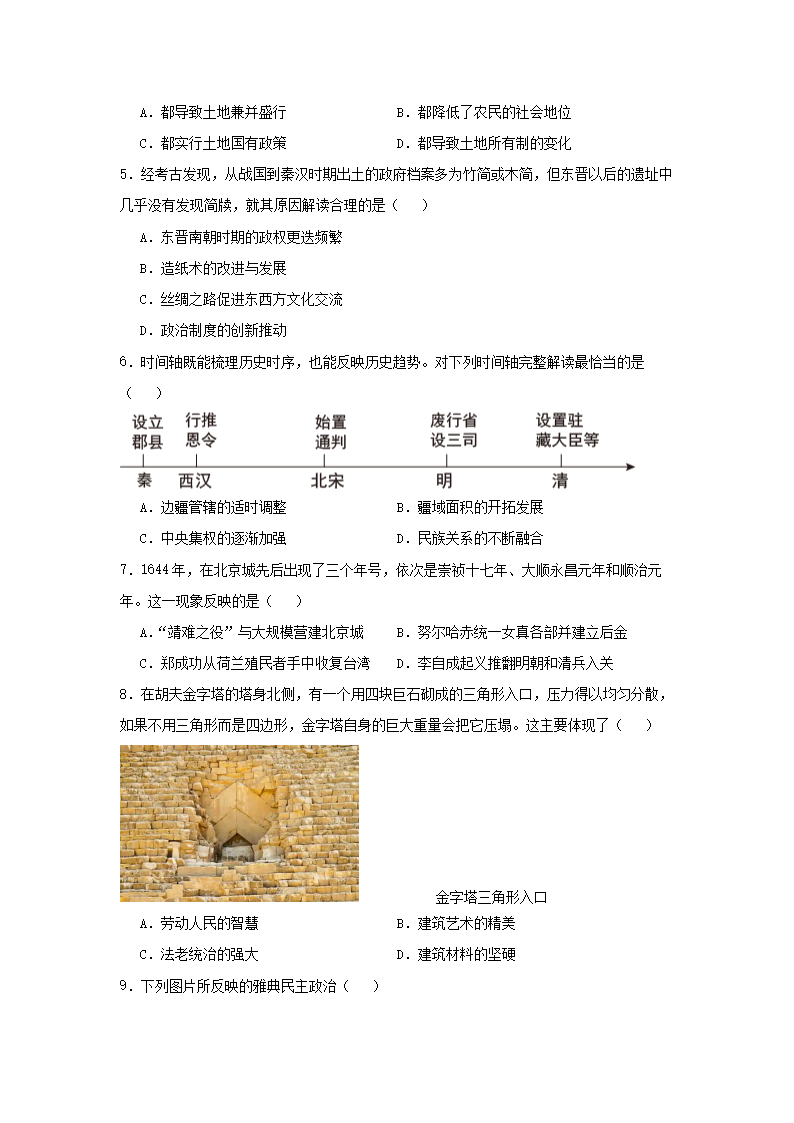 - 2024-2025學(xué)年重慶市開州區(qū)九年級上學(xué)期歷史期中試題及答案