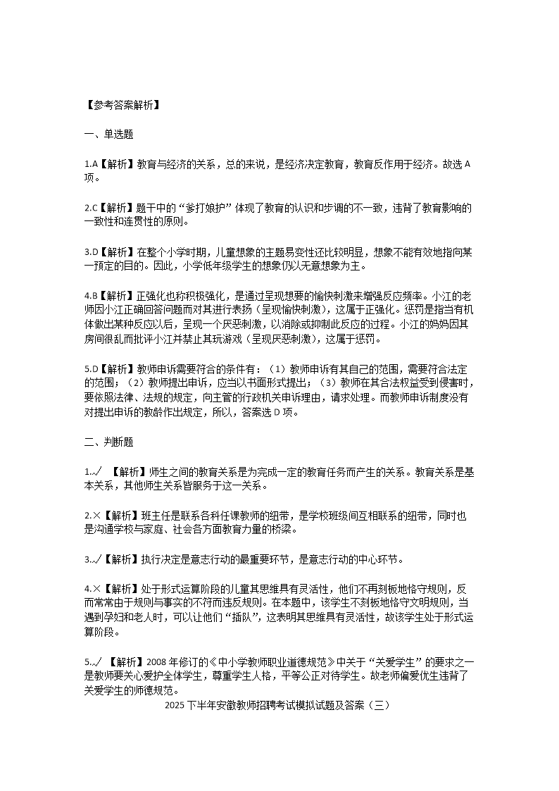 【文檔預覽】 無憂考網整理發(fā)布2025下半年安徽教師招聘考試模擬試題及答案(Word版),前五頁預覽如下: