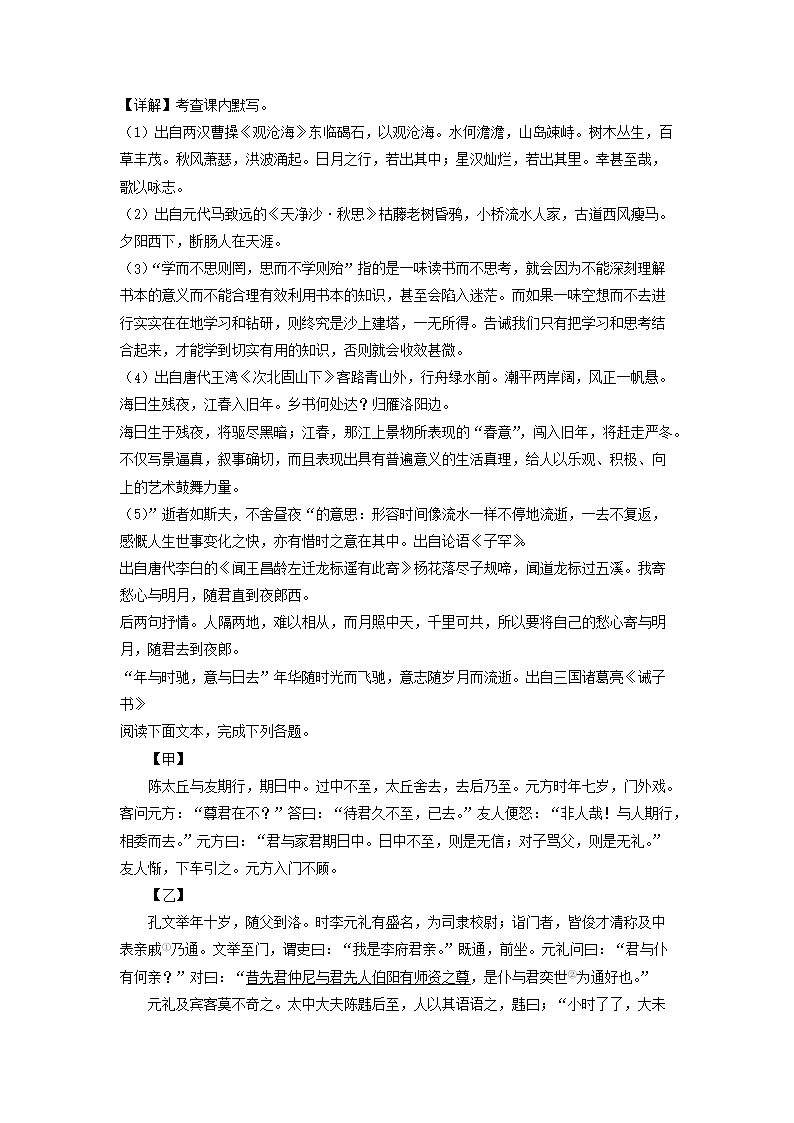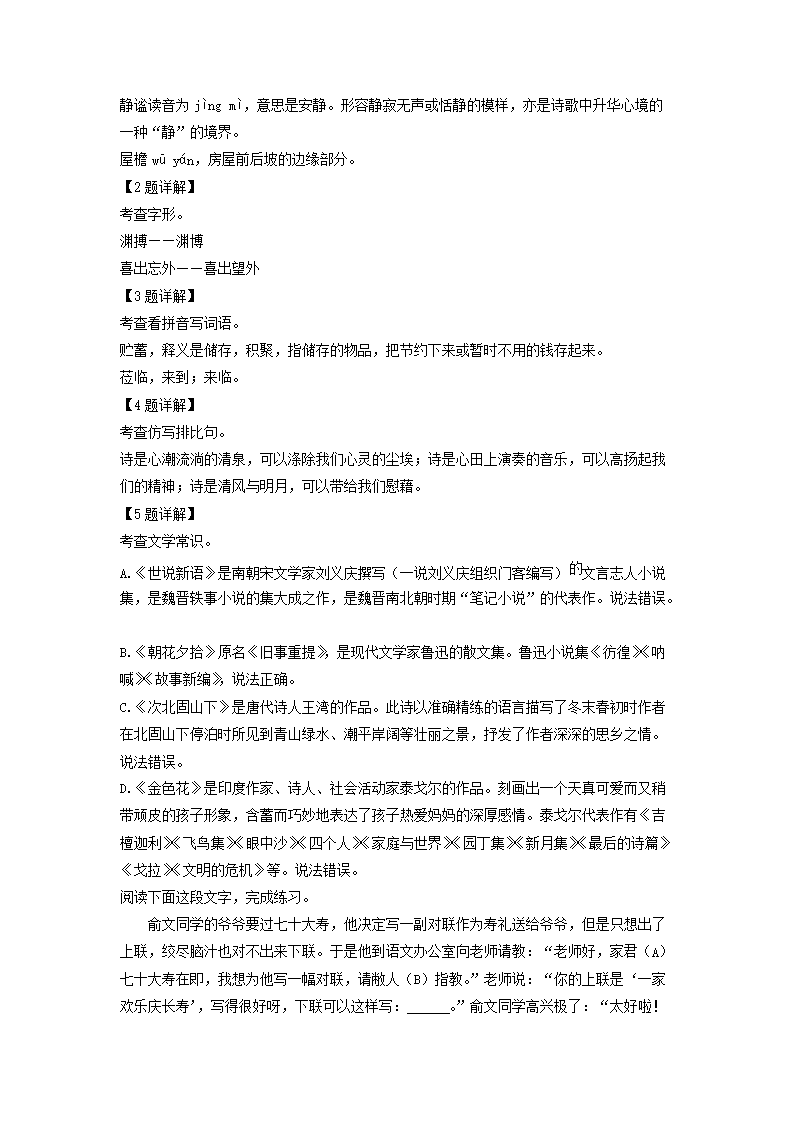 2021-2022年山東青島市嶗山區(qū)六年級(jí)上冊(cè)期末語文試卷及答案(部編版)(Word版)