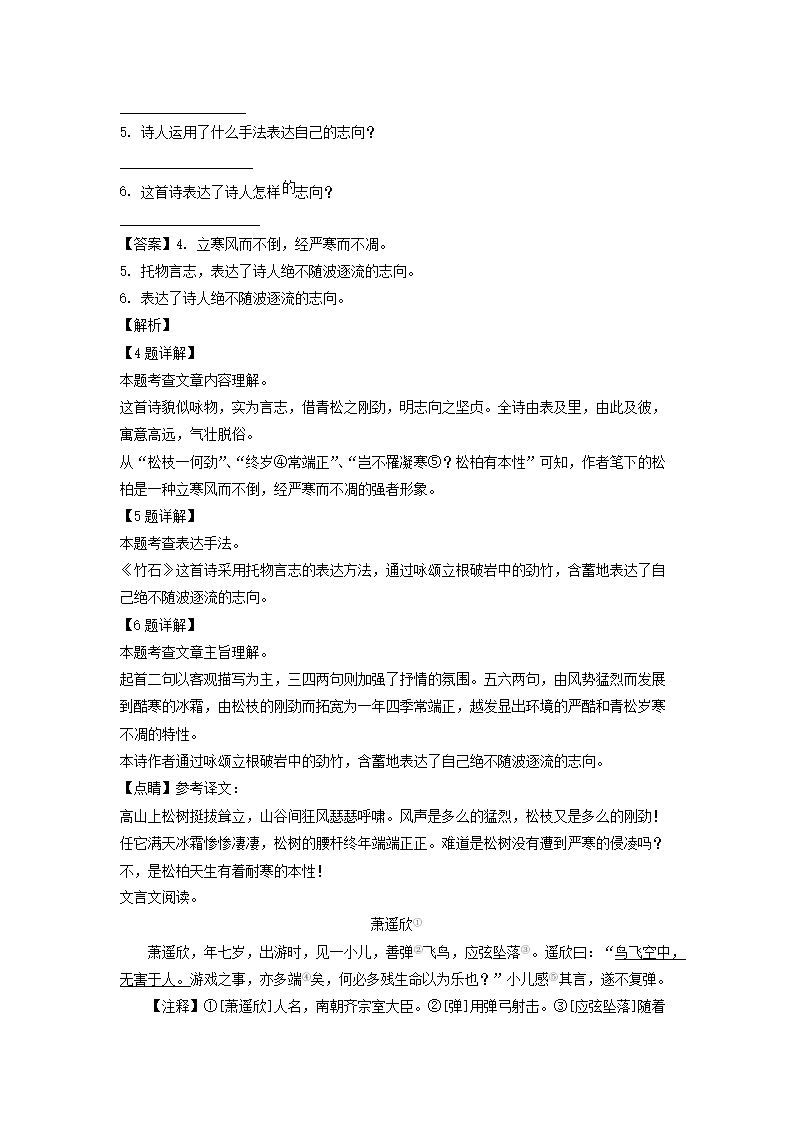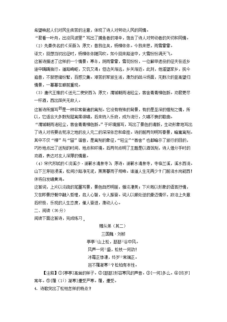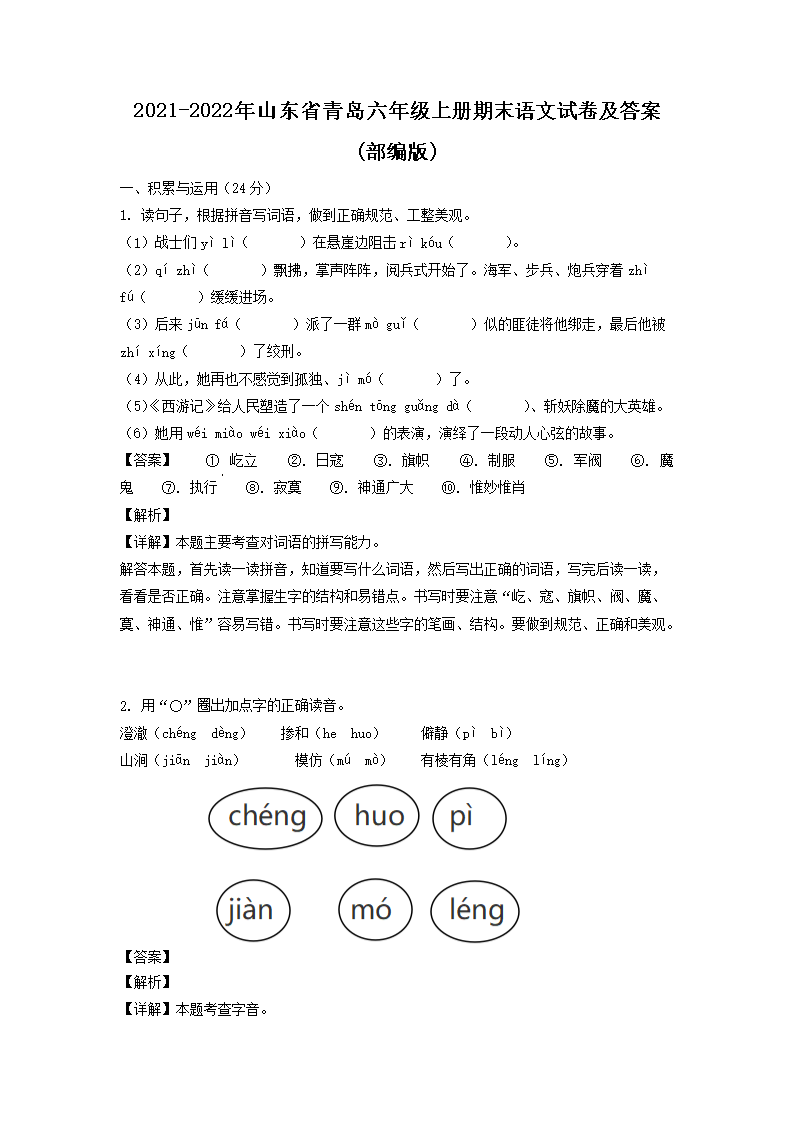 - 2021-2022年山東青島市嶗山區(qū)六年級上冊期末語文試卷及答案(部編版)