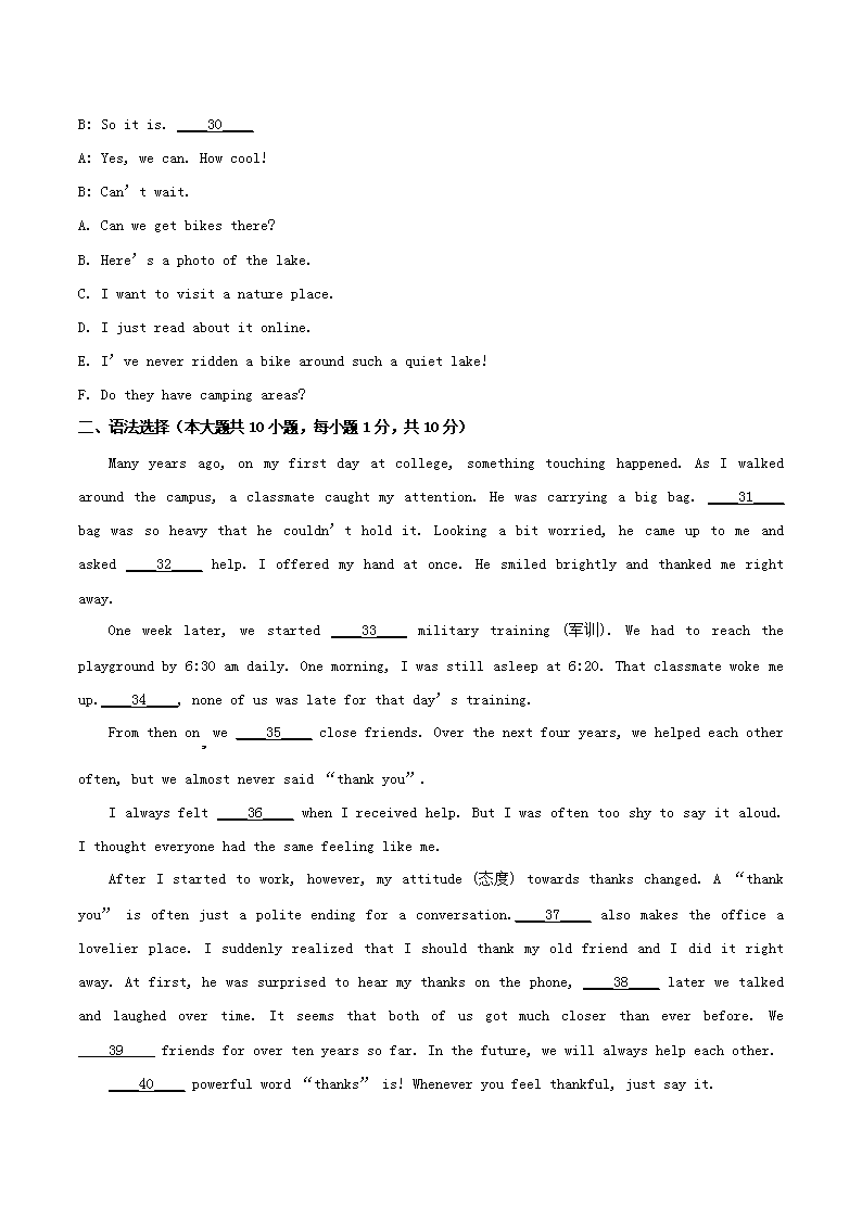 - 2024-2025學年廣西玉林市八年級下學期期中英語試題及答案