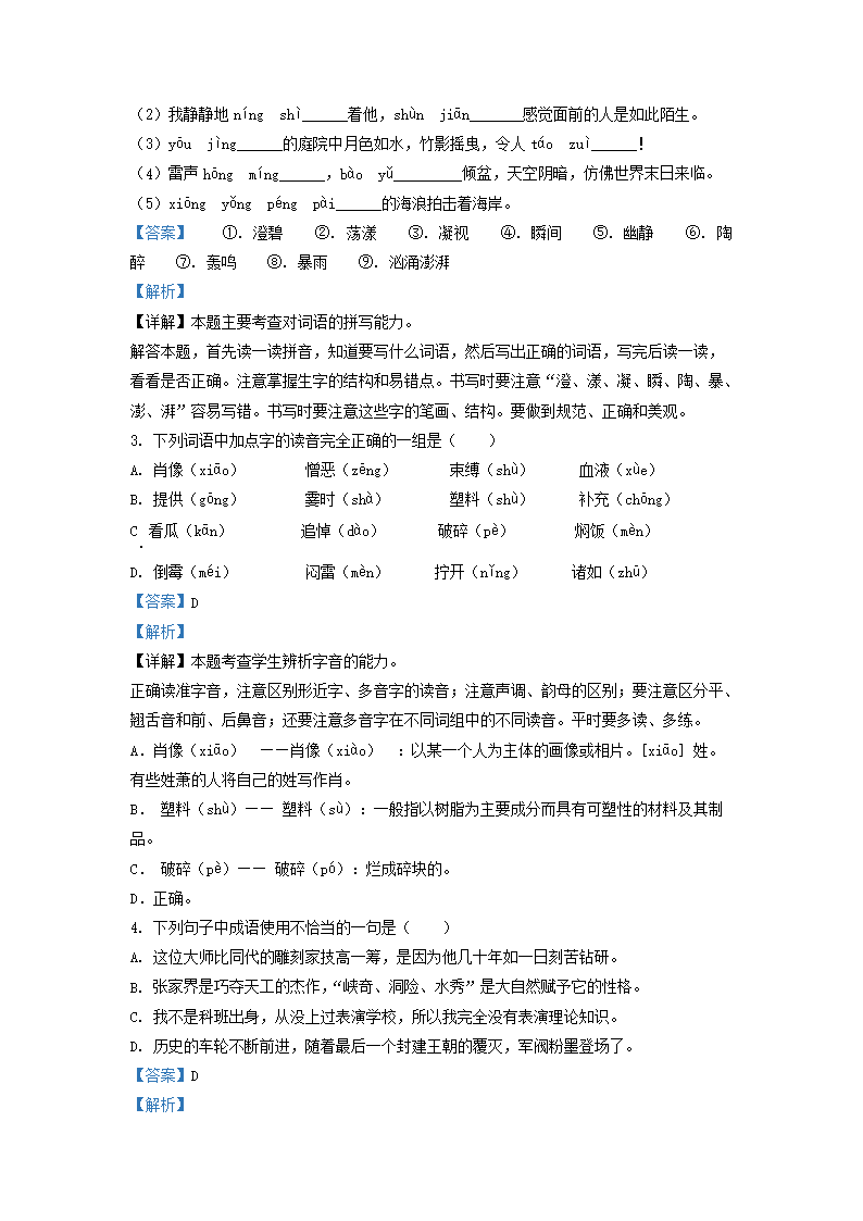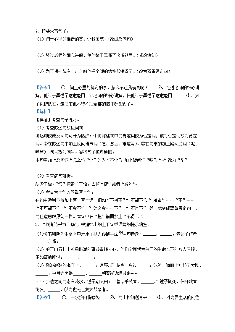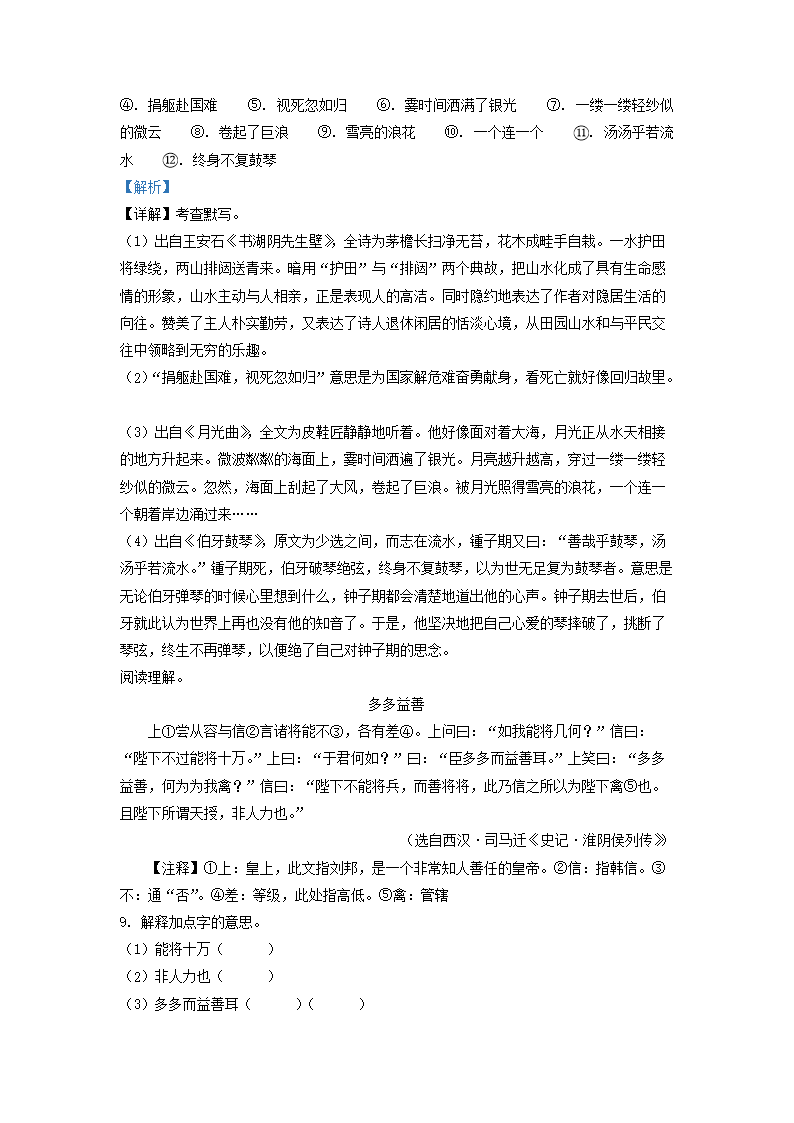 - 2021-2022年山東省青島市高新區(qū)六年級(jí)上冊(cè)期末語文試卷及答案(部編版)