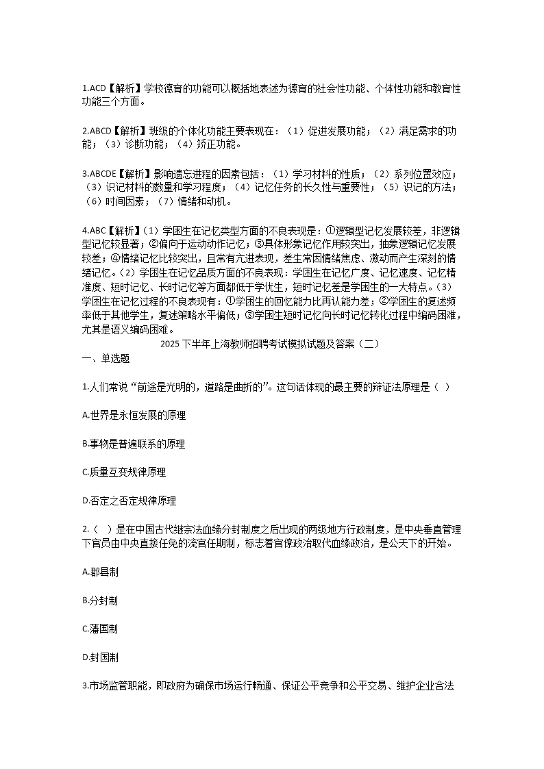 【文檔名稱】 2025下半年上海教師招聘考試模擬試題及答案(Word版).doc