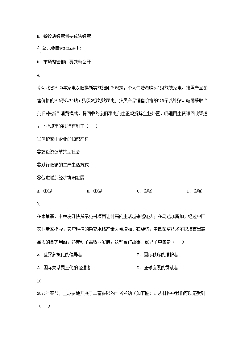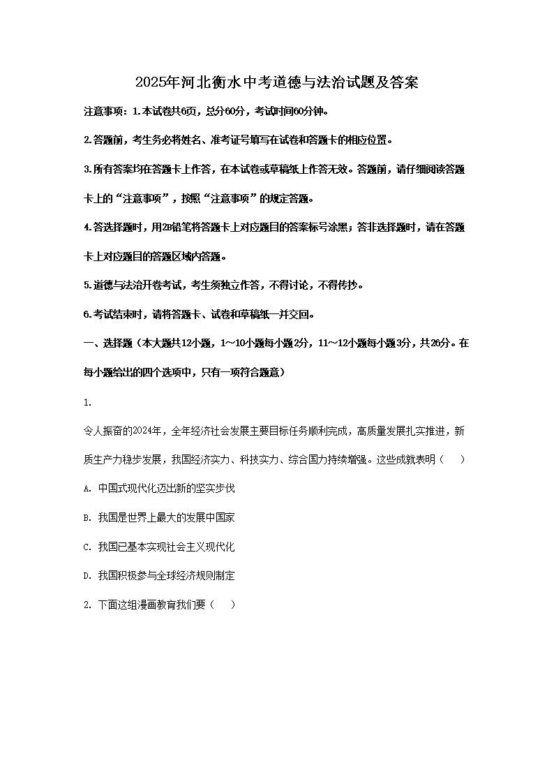 【文檔名稱】 2025年河北衡水中考道德與法治試題及答案(Word版).doc