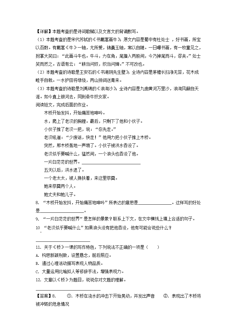 - 2021-2022年山東省青島市高新區(qū)六年級(jí)上冊(cè)期末語文試卷及答案(部編版)