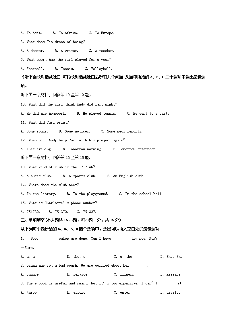 【文檔預覽】 無憂考網(wǎng)整理發(fā)布2024-2025學年天津市河北區(qū)八年級下學期期中英語試題及答案(Word版),前五頁預覽如下: