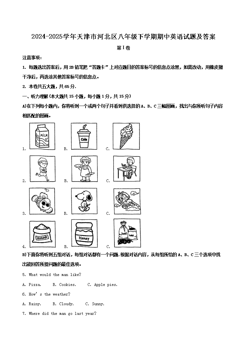 【文檔名稱】 2024-2025學年天津市河北區(qū)八年級下學期期中英語試題及答案(Word版).doc