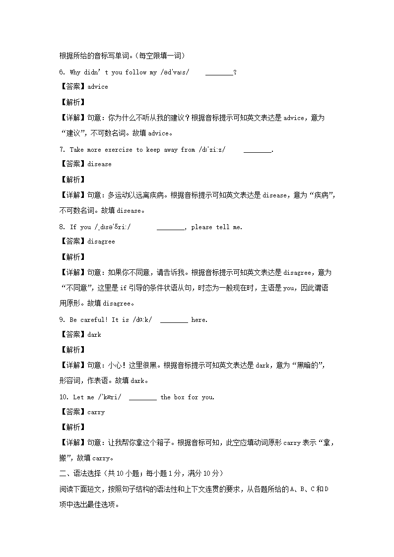 - 2021-2022學年廣東廣州花都區(qū)七年級下冊英語期末試卷及答案