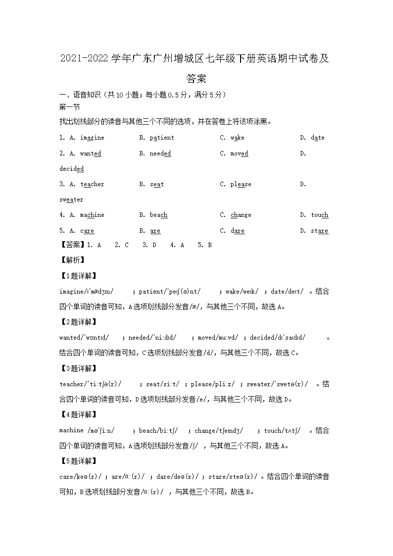 【文檔名稱】 2021-2022學(xué)年廣東廣州增城區(qū)七年級下冊英語期中試卷及答案(Word版).doc