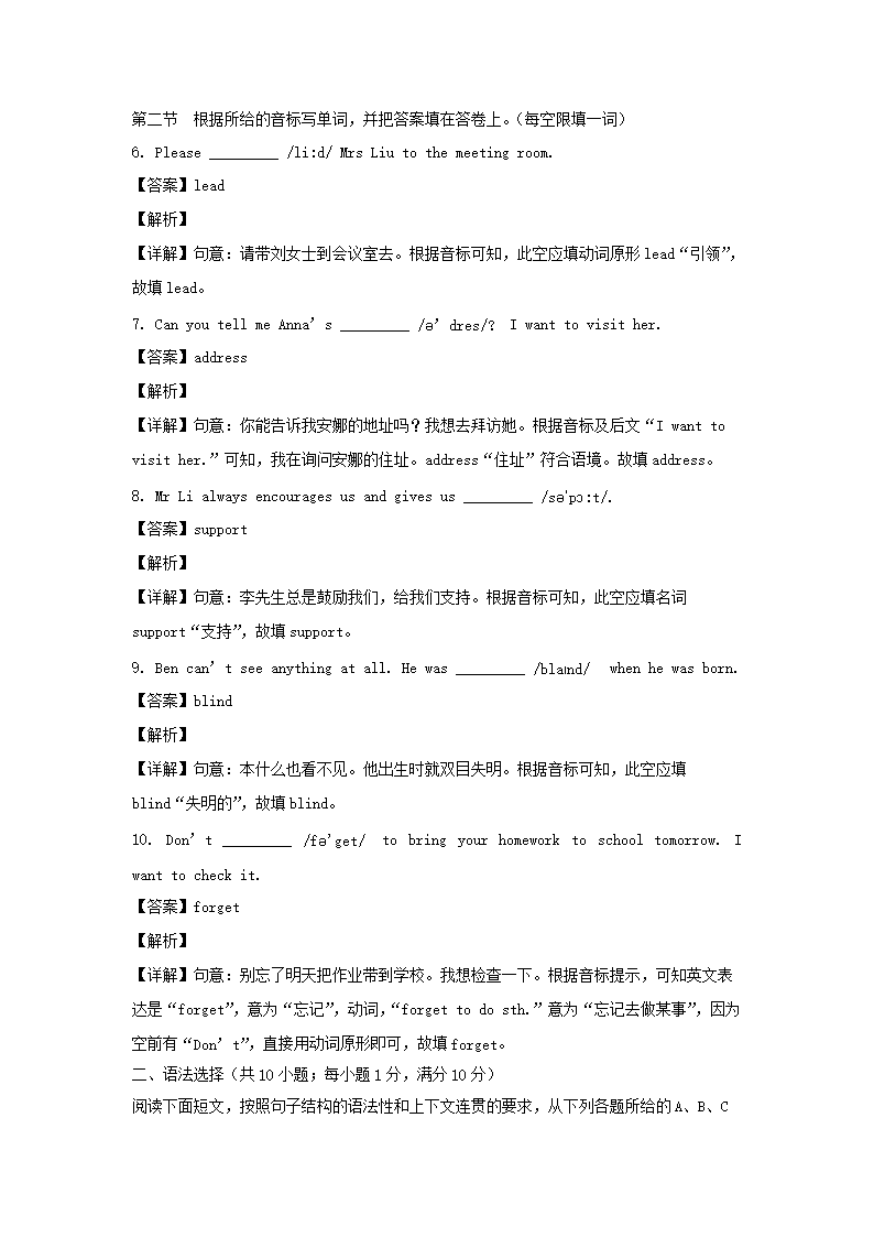 - 2021-2022學(xué)年廣東廣州黃埔區(qū)七年級下冊英語期末試卷及答案