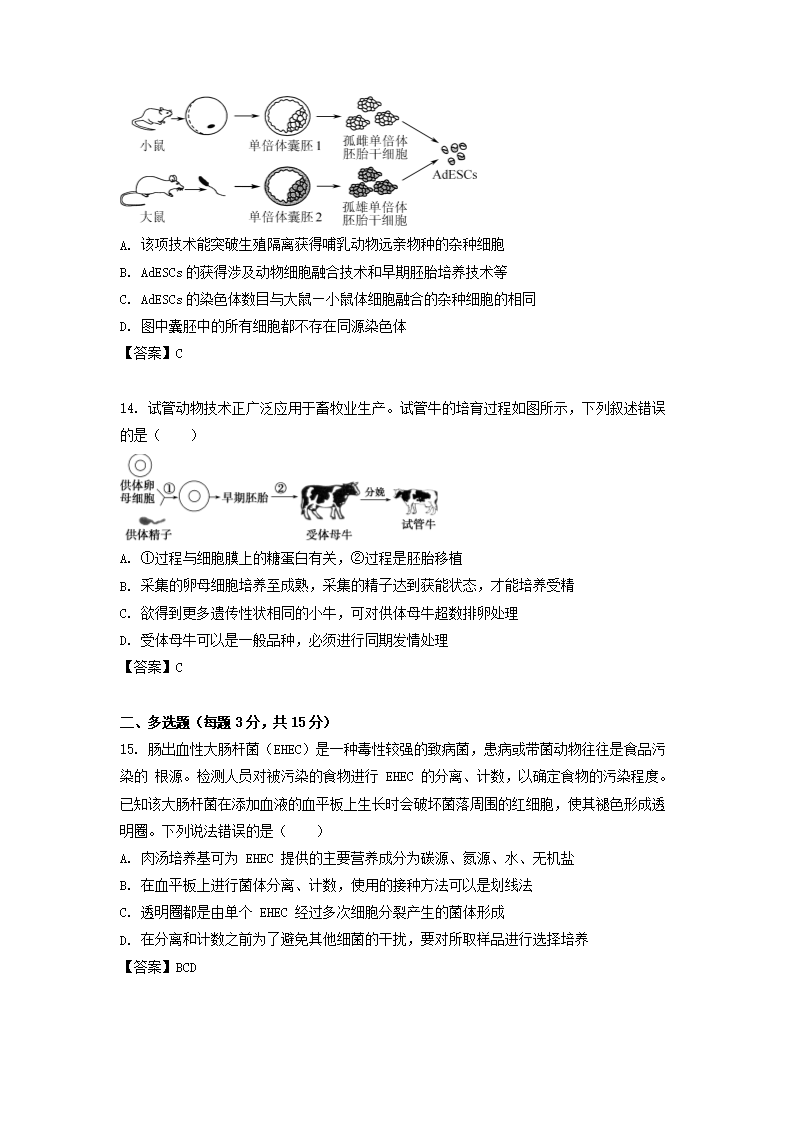 - 2021-2022學(xué)年江蘇鹽城高二下學(xué)期生物期中考試題及答案