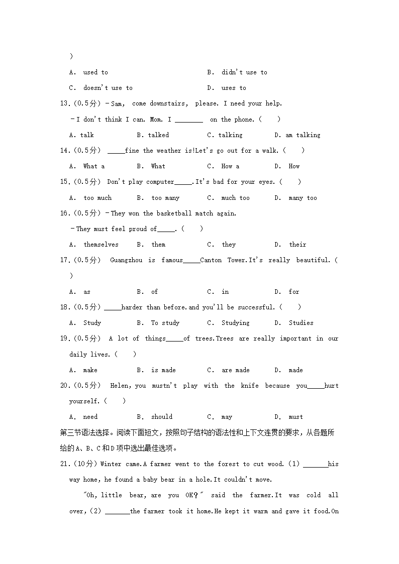- 2021-2022學年廣東廣州增城區(qū)七年級下冊英語期末試卷及答案