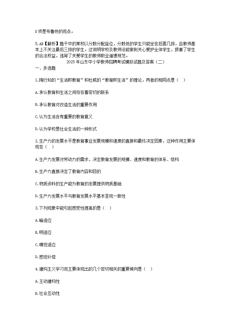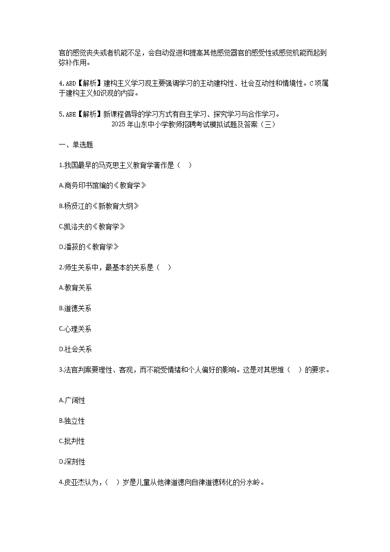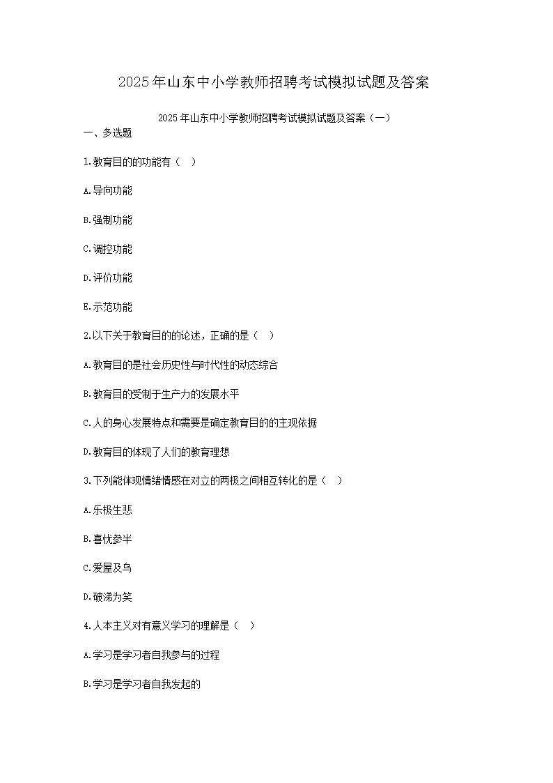 【文檔預(yù)覽】 無(wú)憂考網(wǎng)整理發(fā)布2025年山東中小學(xué)教師招聘考試模擬試題及答案(Word版),前五頁(yè)預(yù)覽如下: