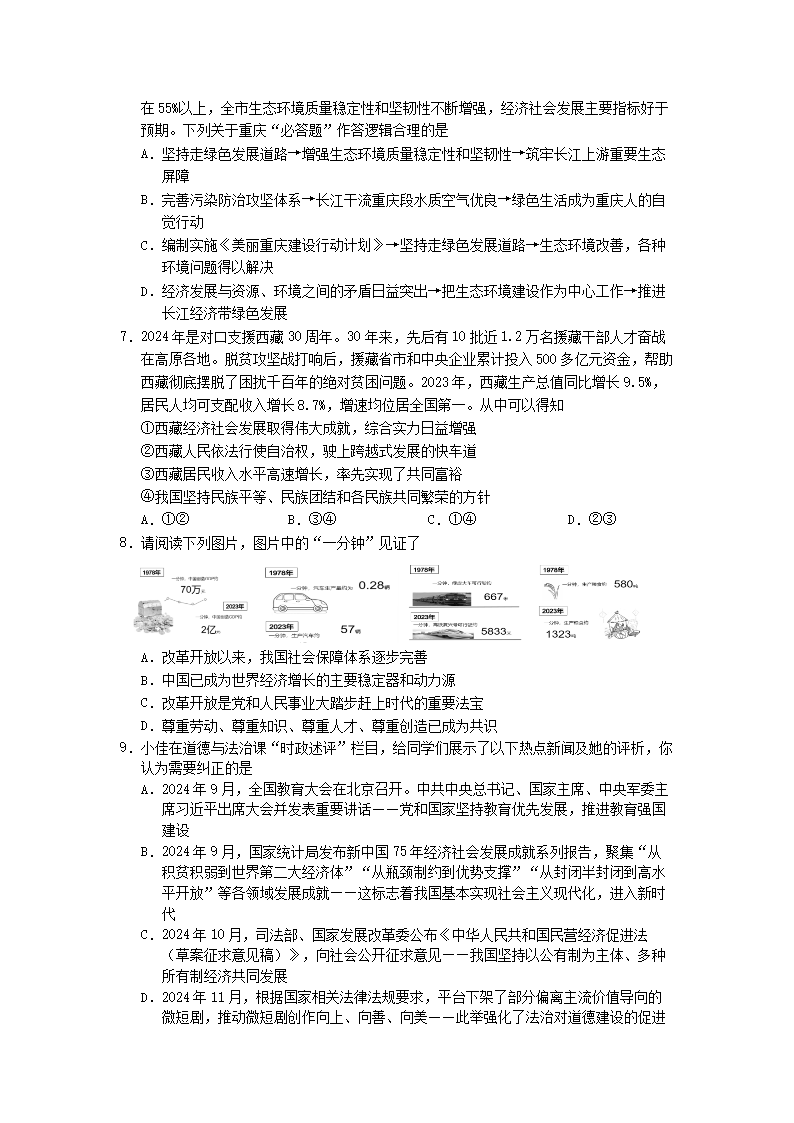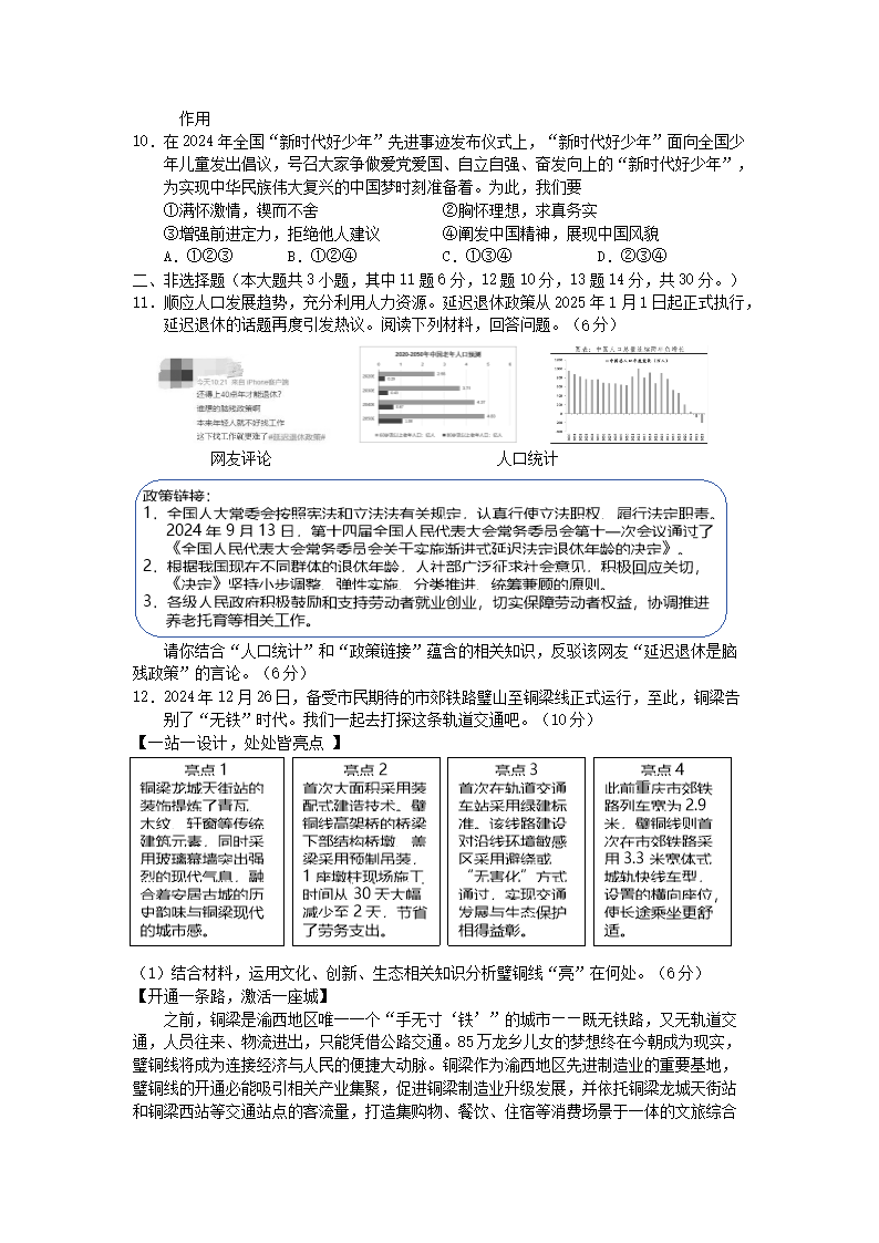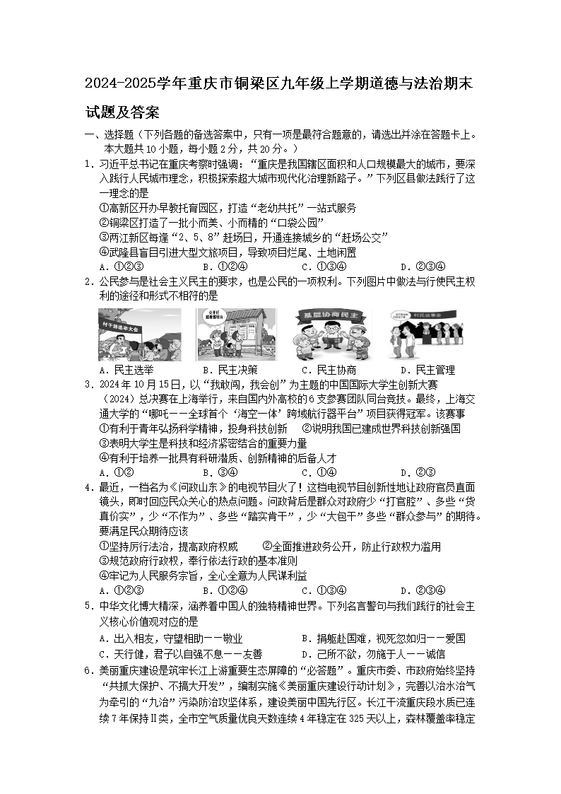 時(shí)間:2025-07-30 11:54:00 來源:無憂考網(wǎng) [字體:小 中 大]【文檔名稱】 2024-2025學(xué)年重慶市銅梁區(qū)九年級(jí)上學(xué)期道德與法治期末試題及答案(Word版).doc