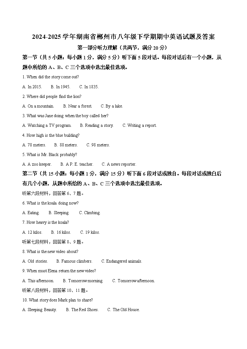 2024-2025學(xué)年湖南省郴州市八年級(jí)下學(xué)期期中英語試題及答案(Word版)