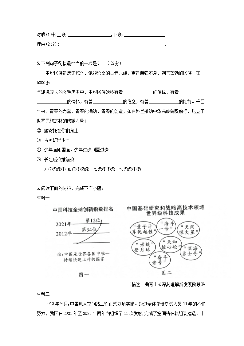 - 2023-2024學年寧夏回族自治區(qū)固原地區(qū)九年級上學期語文期末試題及答案