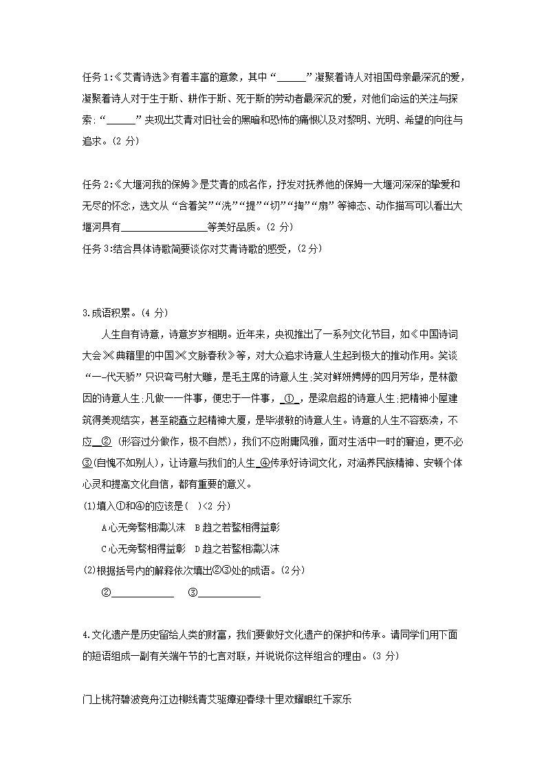 - 2023-2024學年寧夏回族自治區(qū)吳忠市青銅峽市九年級上學期語文期末試題及答案