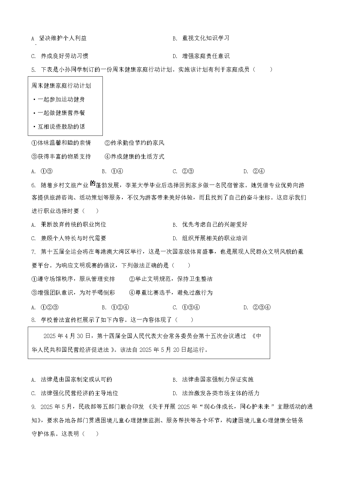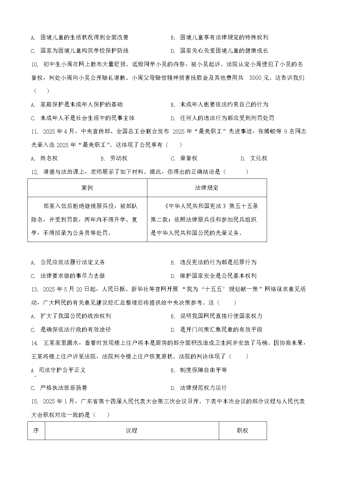 【文檔名稱】 2025年廣東東莞中考道德與法治試題及答案(Word版).doc