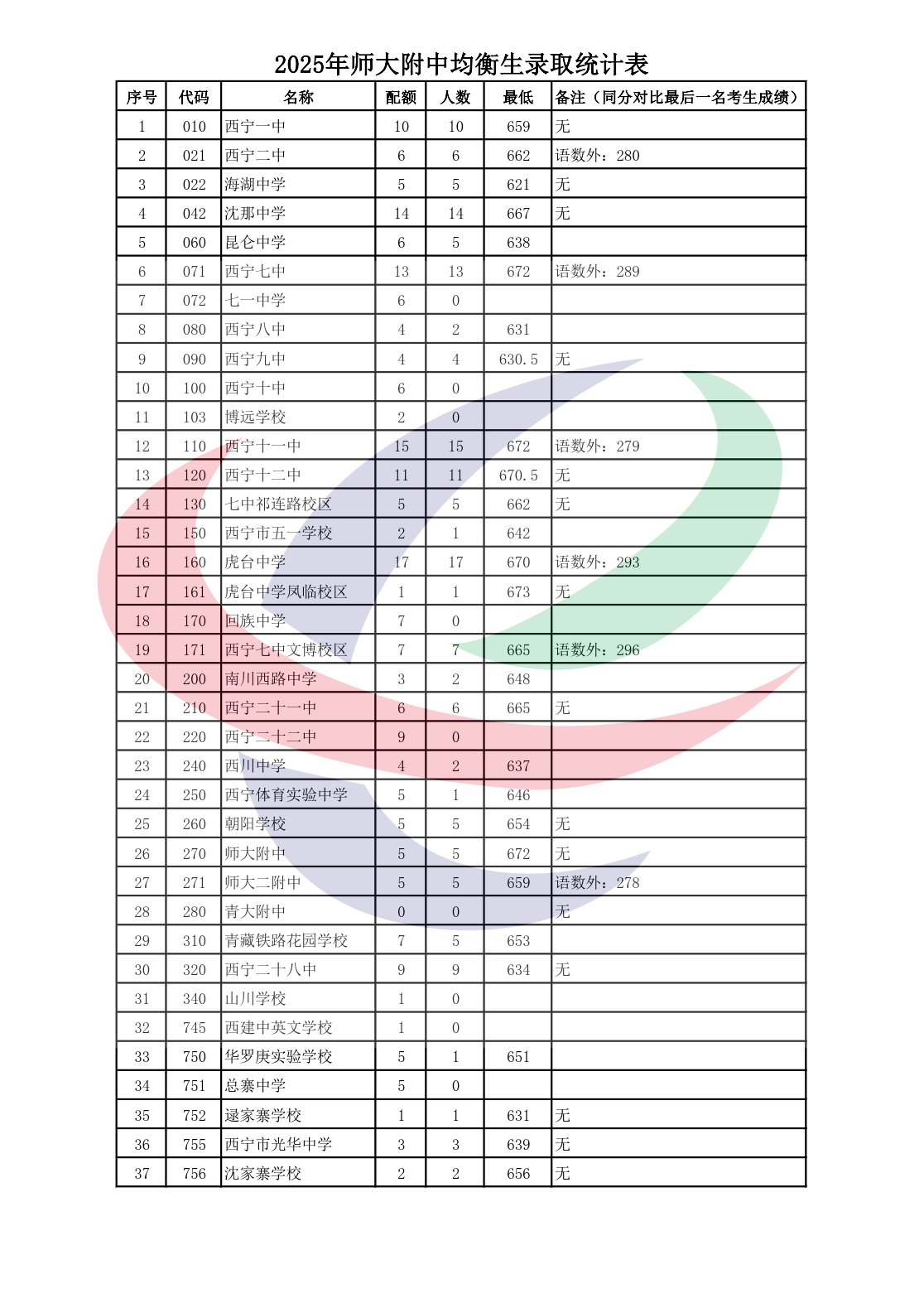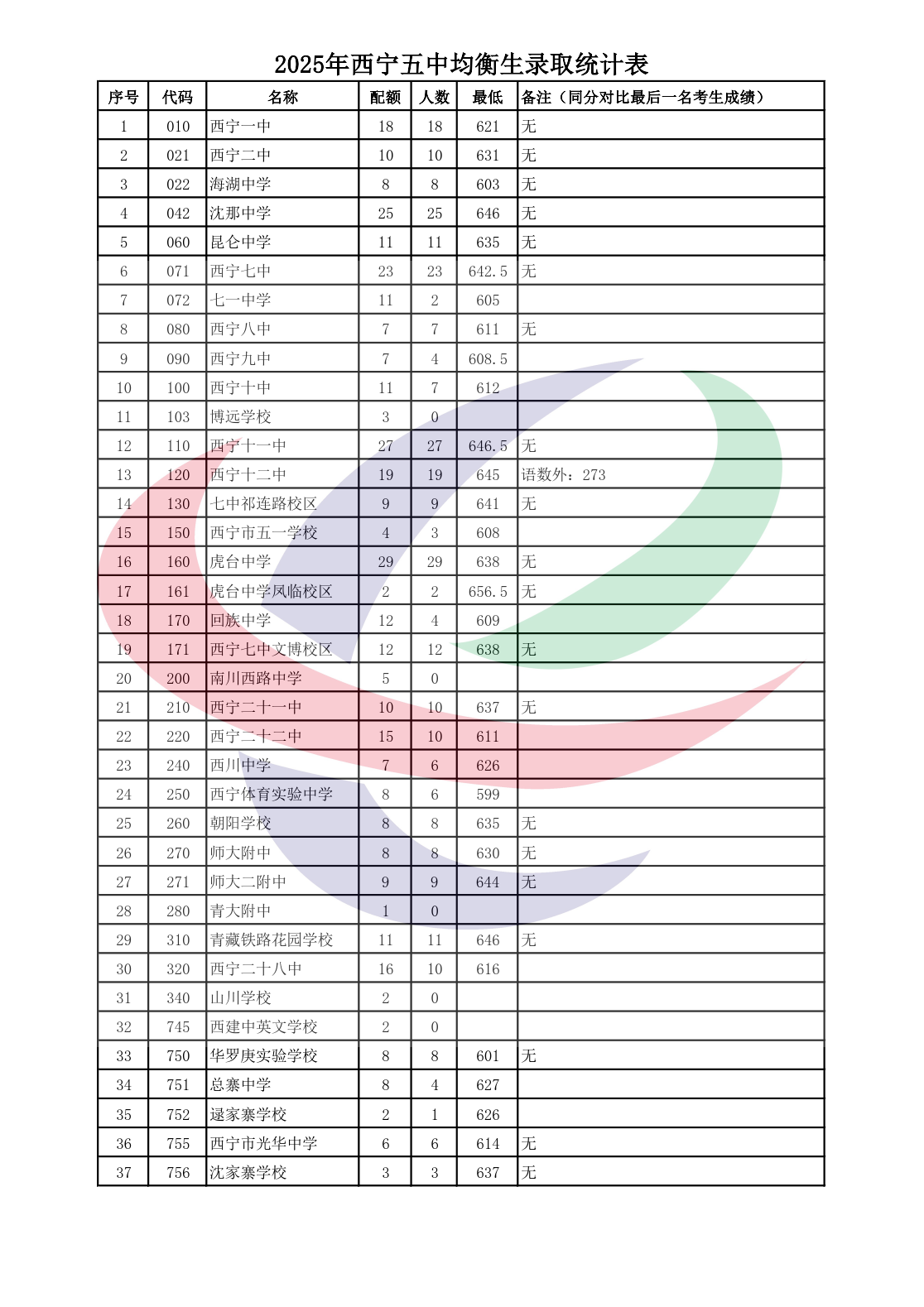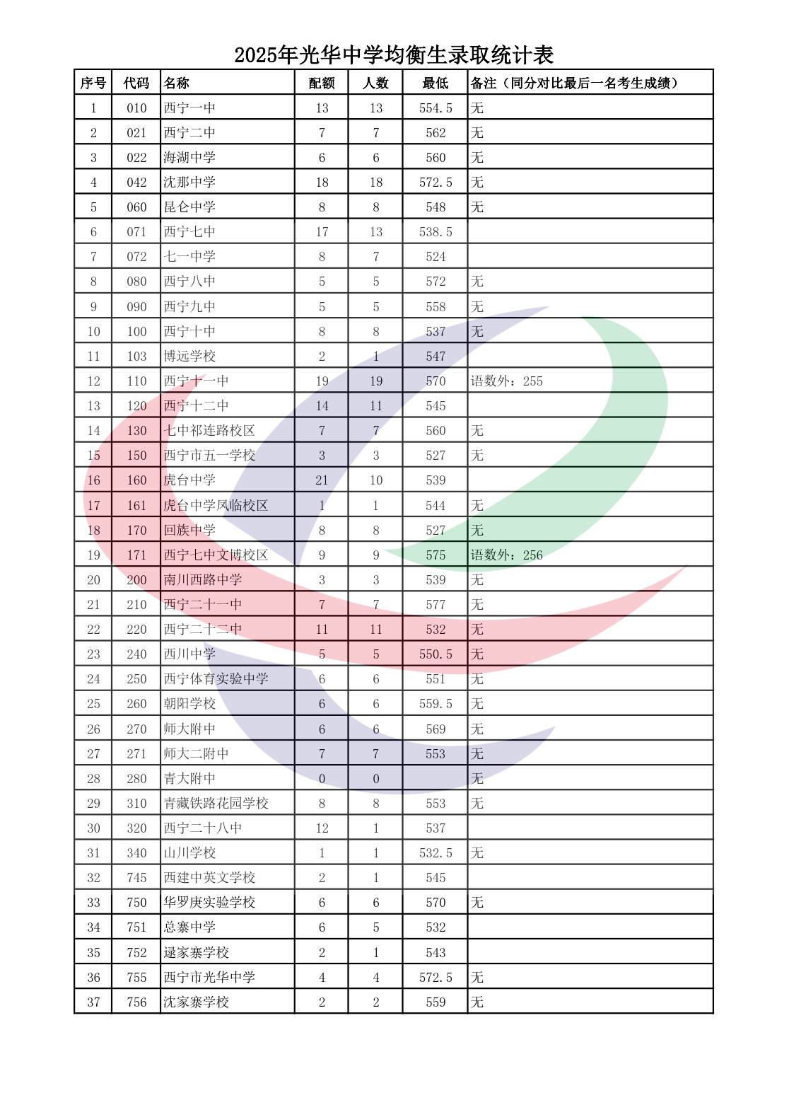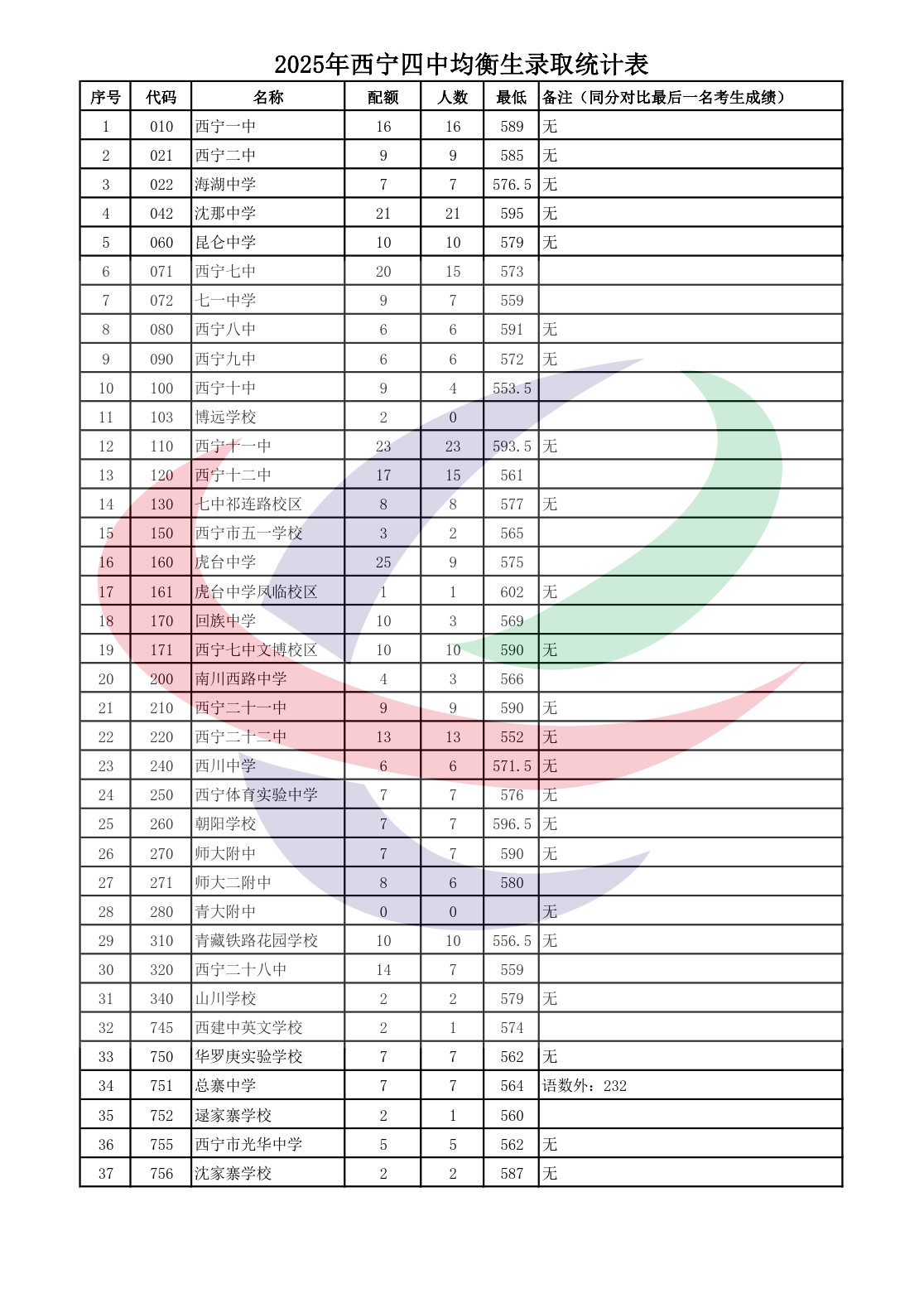 【#小升初# #青海西寧城區(qū)2025年初中學(xué)校均衡生錄取結(jié)果一覽表#】®無憂考網(wǎng)從西寧市教育局了解到,青海西寧城區(qū)2025年初中學(xué)校均衡生錄取結(jié)果一覽表已公布,具體如下: