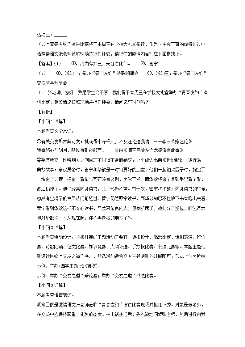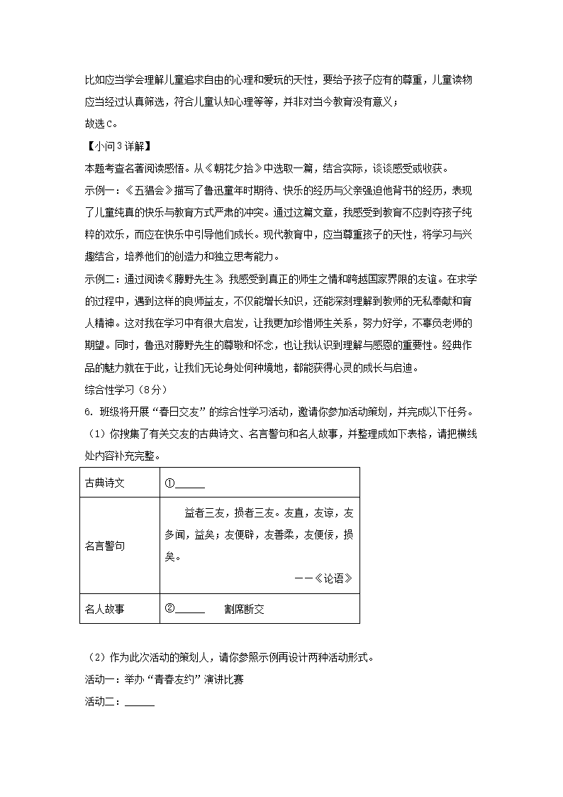 - 2022-2023學(xué)年福建廈門思明區(qū)七年級下冊語文期末試卷及答案