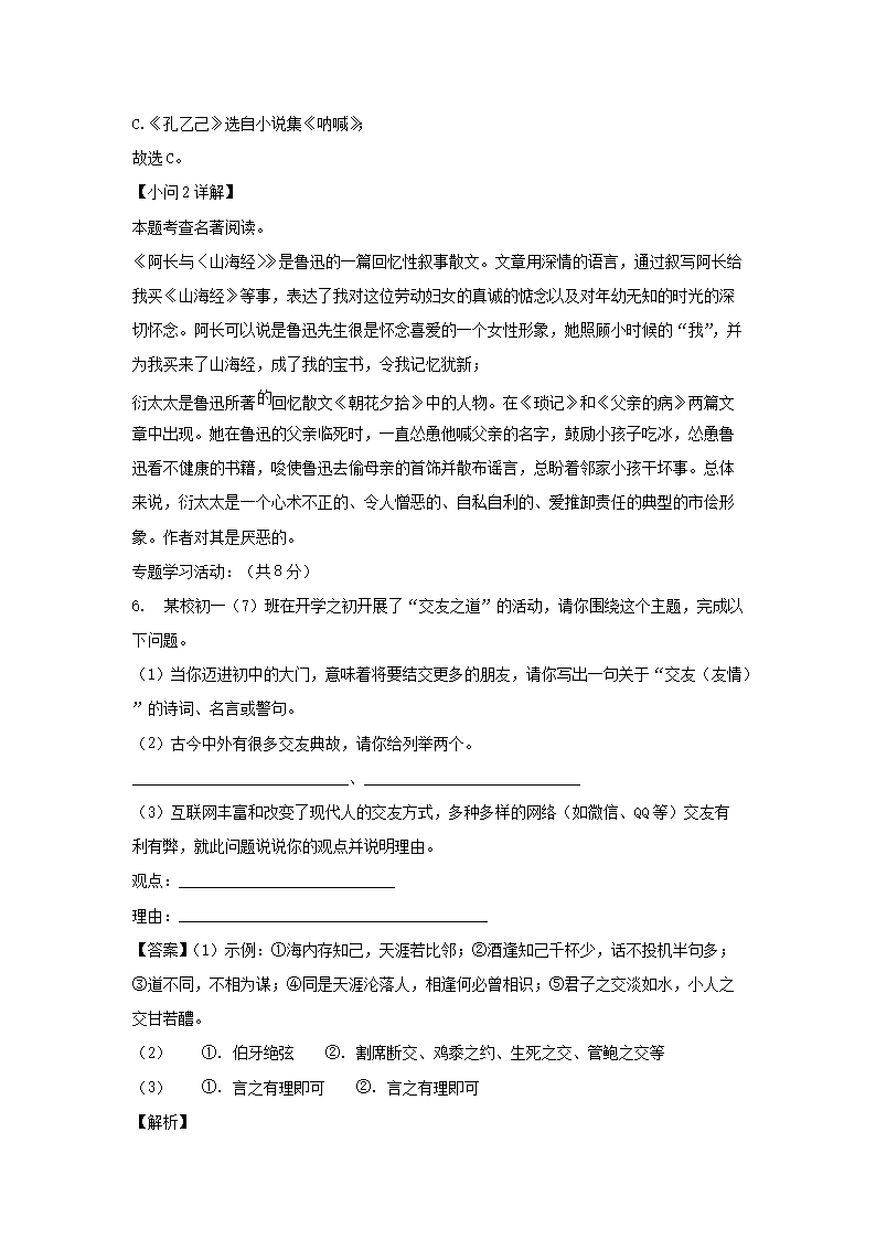 - 2024-2025學(xué)年重慶七年級(jí)上冊(cè)語(yǔ)文第一次月考試卷及答案C卷