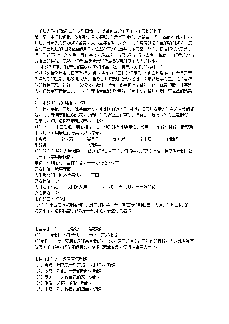 【文檔預(yù)覽】 無(wú)憂考網(wǎng)整理發(fā)布2024-2025學(xué)年重慶七年級(jí)上冊(cè)語(yǔ)文期中試卷及答案(Word版),前五頁(yè)預(yù)覽如下: