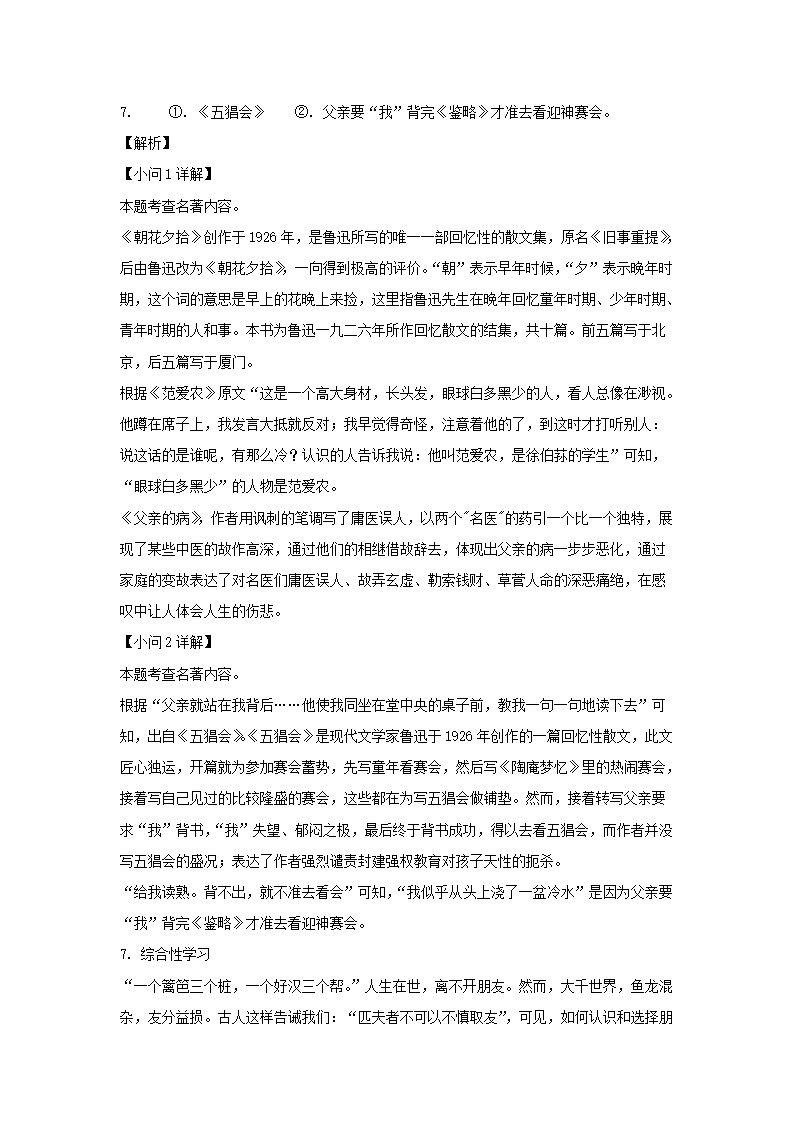 【文檔預覽】 無憂考網(wǎng)整理發(fā)布2023-2024學年重慶潼南區(qū)七年級上冊語文期中試卷及答案(Word版),前五頁預覽如下: