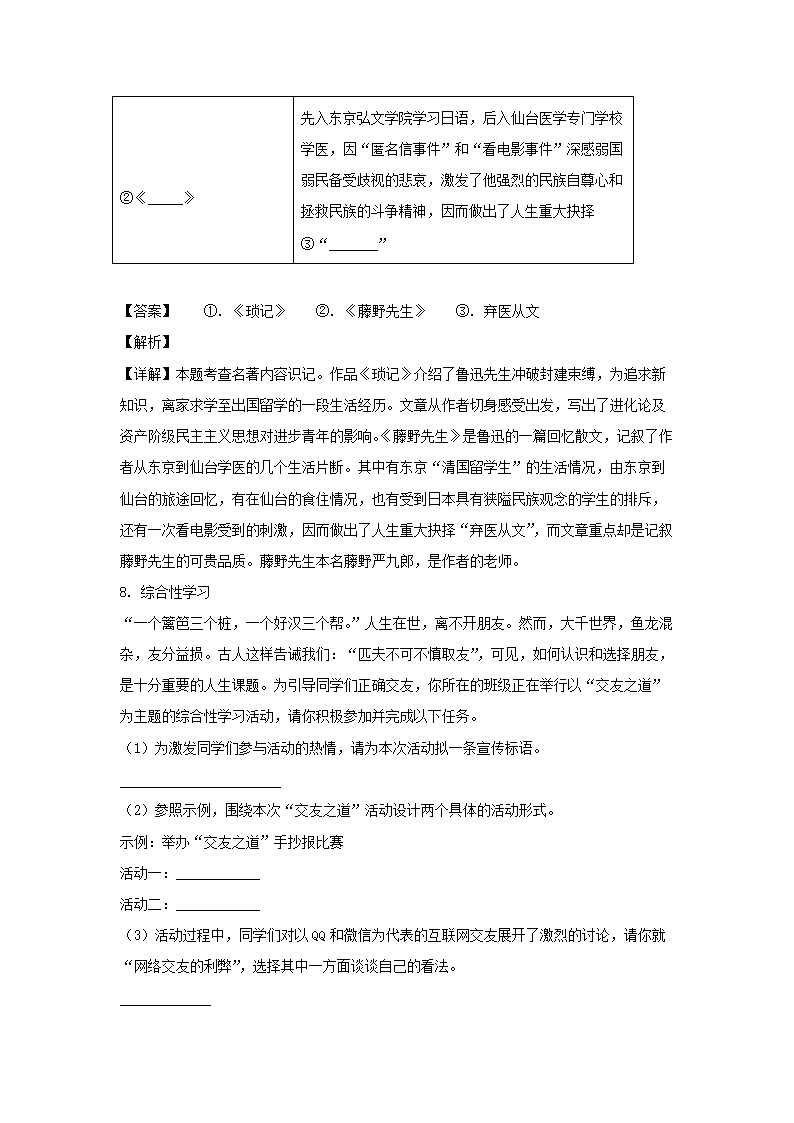 - 2020-2021學(xué)年重慶七年級(jí)上冊(cè)語(yǔ)文第一次月考試卷及答案