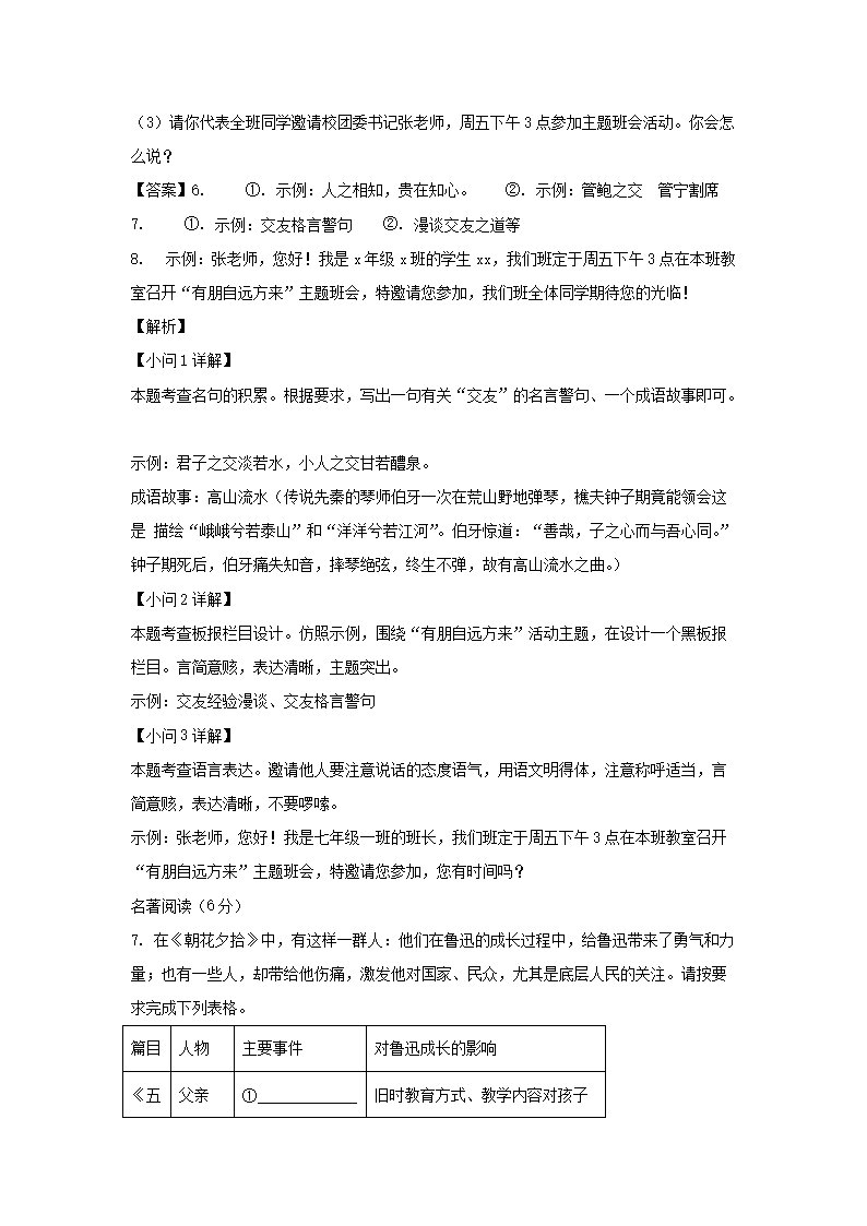 - 2020-2021學(xué)年重慶七年級上冊語文第一次月考試卷及答案