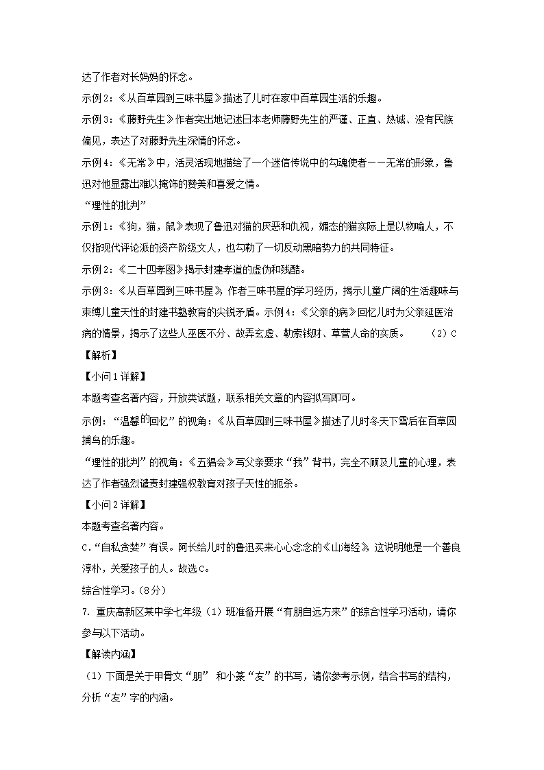 【文檔名稱】 2023-2024學年重慶沙坪壩區(qū)七年級上冊語文期中試卷及答案(Word版).doc