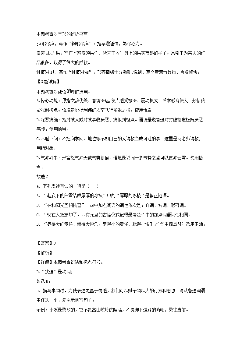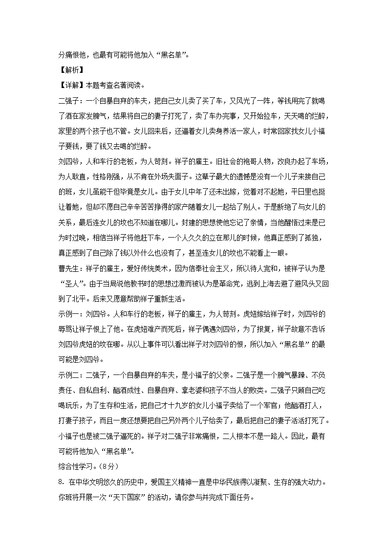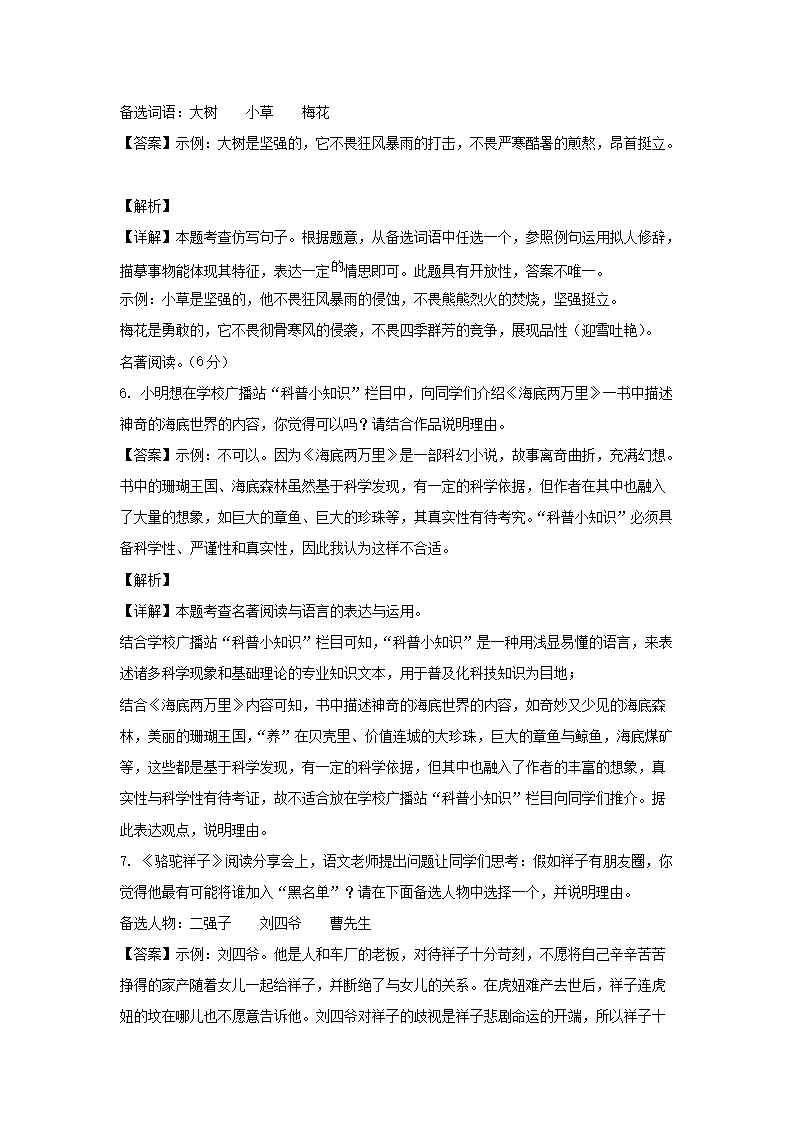- 2021-2022學(xué)年重慶兩江新區(qū)七年級上冊語文期末試卷及答案