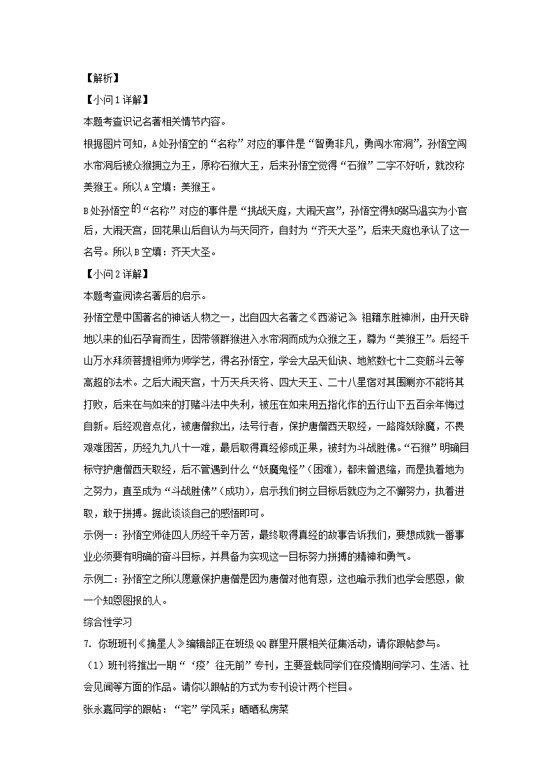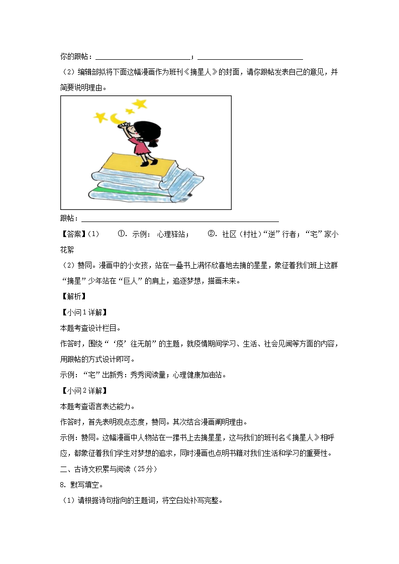 - 2022-2023學(xué)年重慶南川區(qū)七年級上冊語文期末試卷及答案