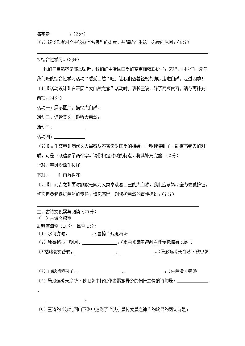 時(shí)間:2025-08-18 17:12:00 來源:無憂考網(wǎng) [字體:小 中 大]【文檔名稱】 2022-2023學(xué)年重慶渝北區(qū)七年級(jí)上冊(cè)語(yǔ)文10月月考試卷及答案(Word版).doc