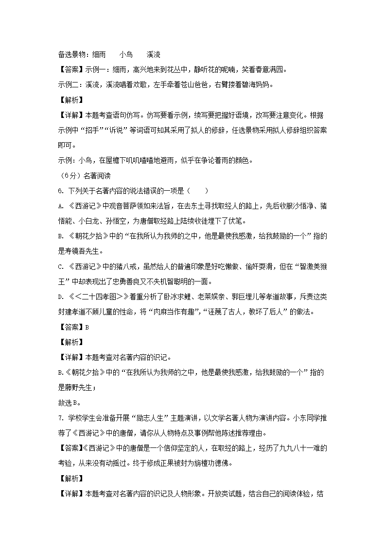 - 2022-2023學(xué)年重慶渝北區(qū)七年級上冊語文10月月考試卷及答案