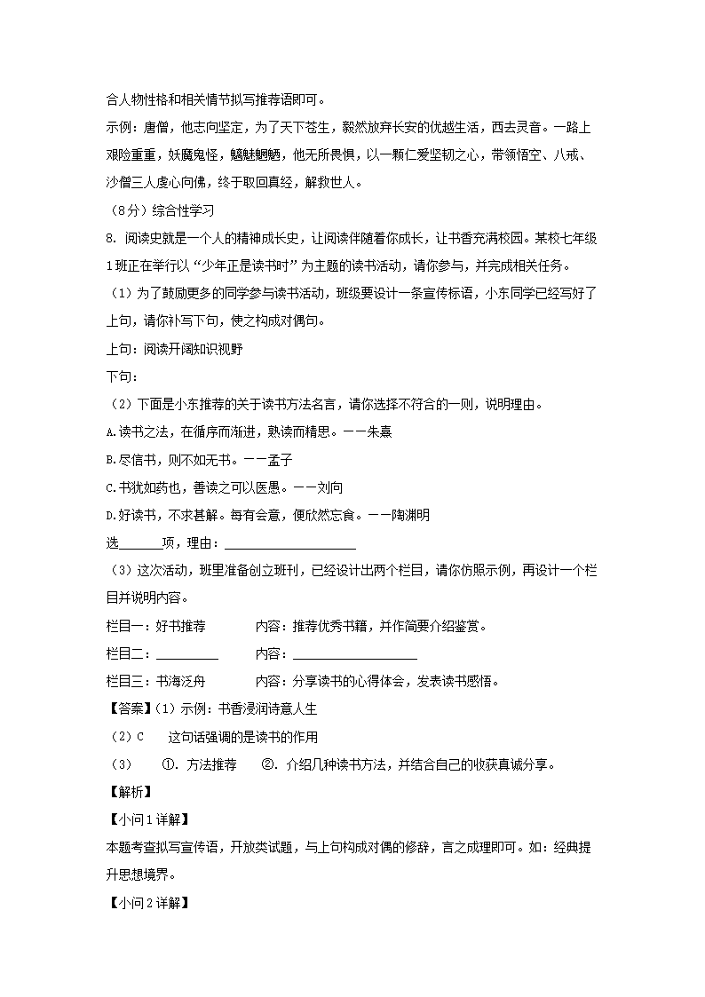- 2022-2023學(xué)年重慶南川區(qū)七年級上冊語文期末試卷及答案