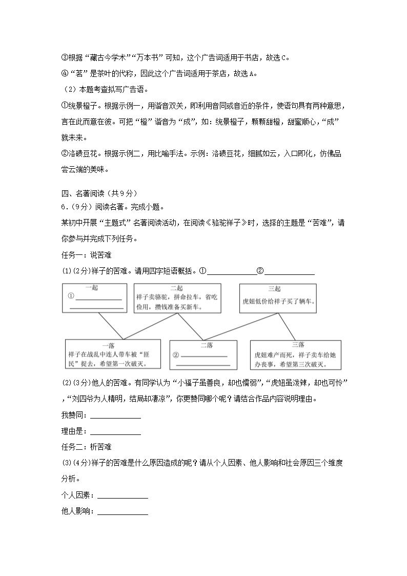 - 2023-2024學(xué)年重慶永川區(qū)七年級上冊語文期末試卷及答案