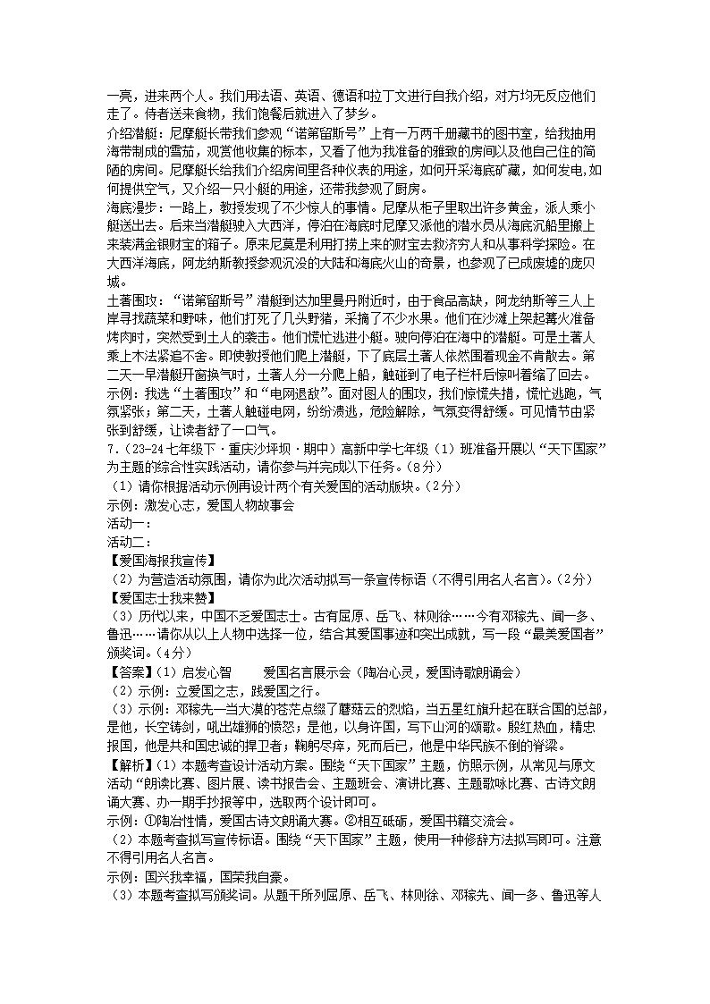 - 2023-2024學(xué)年重慶南岸區(qū)七年級上冊語文期末試卷及答案