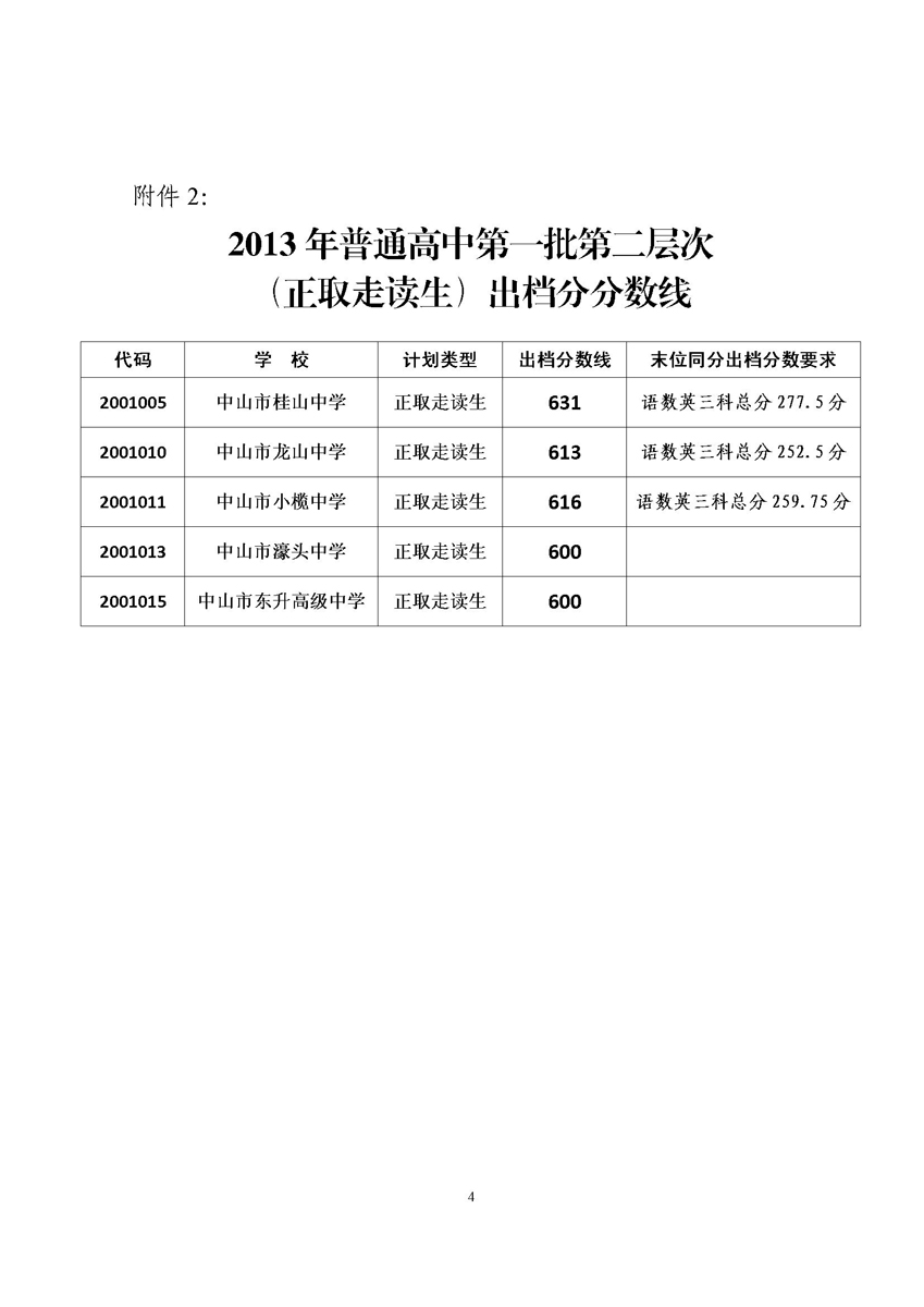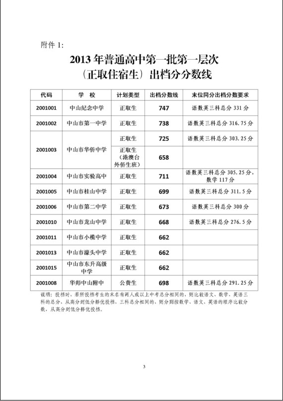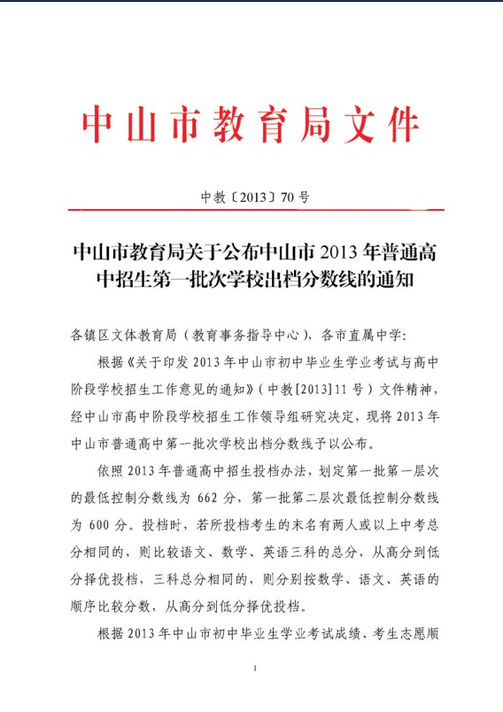 2013廣東中考分數(shù)線:中山中考第一批次學校出檔分數(shù)線公布